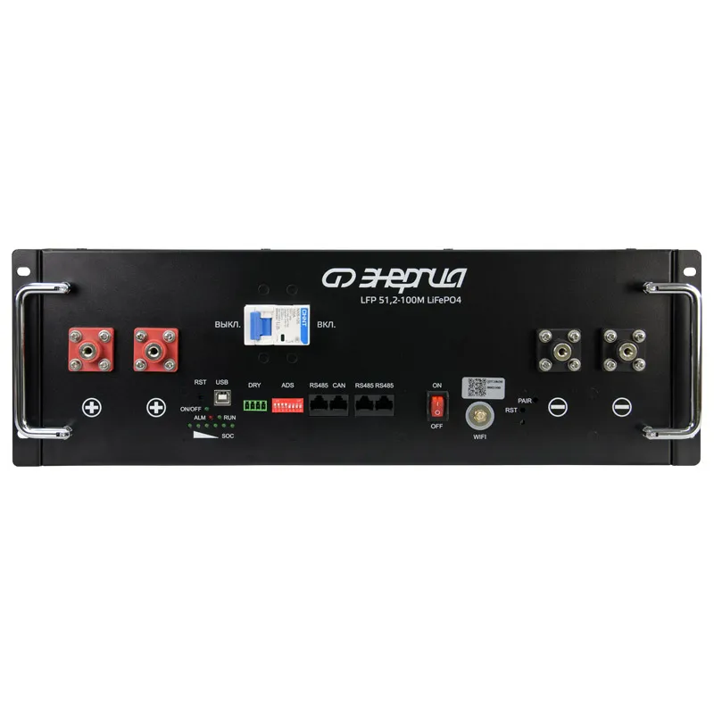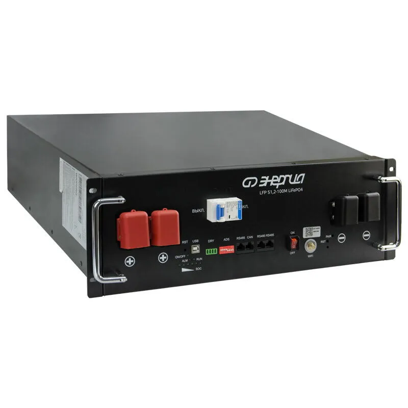 Аккумулятор Энергия LFP 51,2-100M Rack это универсальное и надежное решение для хранения энергии, гарантирующее стабильное и безопасное питание вашего оборудования. Применение: Для частного дома / Для промышленных нужд Внешний порт: USB, RS-485, сухой порт, CAN-порт BMS подключение: есть Способ установки: В стойку Rack Индикация: ЖК дисплей Максимальный ток заряда, А: 50 Степень защиты, IP: IP21 Рабочая температура, °С: -10...+45 Емкость (Ач): 100 Напряжение батареи (В): 51,2 Вес нетто (кг): 44 Габаритные размеры нетто (мм): 133х482х480 Особенности и преимущества: Безопасность: Аккумуляторная батарея оснащена встроенными механизмами защиты от перегрева, короткого замыкания и переразряда, что делает его удобным в эксплуатации. Удобство использования: Благодаря форм-фактору Rack, аккумулятор легко интегрируется в существующие установки. Удобные крепежные элементы обеспечивают надежную фиксацию. Интерактивный ЖК дисплей: Для удобства пользователя на дисплее отображается состояние заряда, напряжение и другие важные параметры в реальном времени. Экологичность: АКБ не содержит токсичных веществ и безопасен для окружающей среды, что делает его отличным выбором для экологически осознанных пользователей. Применение: Резервное питание: Идеально подходит для обеспечения бесперебойной работы комплексов в дата-центрах и телекоммуникационных станциях. Хранение энергии для возобновляемых источников: Отличный выбор для солнечных и ветровых электростанций, где важно эффективно управлять и хранить энергию. Транспорт и мобильные устройства: Применяется в электрических автобусах и мобильных медицинских установках, обеспечивая длительное время работы на одной зарядке. Промышленные объекты: Используется в автоматизированных производственных линиях и складских комплексах для работы стабильного энергоснабжения. Системы управления и мониторинга: Обеспечивает надежное питание для систем безопасности и автоматизированных систем управления зданием (BMS).