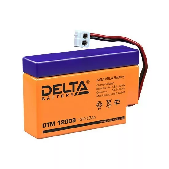 Краткое описание Герметизированный VRLA cвинцово-кислотный аккумулятор Delta DTM 12008 напряжением 12В и емкостью 0.8Ач изготовлен по технологии AGM (с микропористым заполнителем, пропитанным электролитом). Корпус изготовлен из негорючего ABS пластика. Срок службы аккумулятора достигает 6 лет. Аккумулятор предназначен для работы в режиме постоянного подзаряда (буферный режим) или в режиме разряд-заряд (циклический режим). Обладает низким внутренним сопротивлением и саморазрядом. Дополнительно к аккумулятору у нас можно подобрать для него зарядное устройство. Технические характеристики Номинальное напряжение 12 В Число элементов 6 Срок службы 6 лет Номинальная емкость (25oС) 20 часовой разряд (0.04 А; 1.75 В/эл) 0.8 Ач 10 часовой разряд (0.076 А; 1.75 В/эл) 0.76 Ач 5 часовой разряд (0.135 А; 1,75 В/эл) 0.675 Ач Саморазряд 3% емкости в месяц при 20oС Внутреннее сопротивление полностью заряженной батареи (25oС) 260 мОм Особенности Технология AGM позволяет рекомбинировать до 99% выделяемого газа; Нет ограничений на воздушные перевозки; Соответствие требованиям UL, IEC, Гост Р; Легированные кальцием свинцовые пластины обеспечивают низкий саморазряд, высокую конструктивную прочность решетки; Необслуживаемые. Не требует долива воды; Высокая плотность энергии; Корпус аккумулятора выполнен из пластика ABS,не поддерживающего горение. Рабочий диапазон температур Разряд -20÷60 Заряд -10÷60 Хранение -20÷60 Макс. разрядный ток (25oС) 12 А (5с) Циклический режим (2.3÷2.35 В/эл) Макс.зарядный ток 0.24 А Температурная компенсация 30 мВ/oС Буферный режим (2.23÷2.27 В/эл) Температурная компенсация 19.8 мВ/oС Габариты (±1мм) Длина, мм96 Ширина, мм 25 Высота, мм 62 Полная высота, мм 62 Вес (±3%), кг 0.34