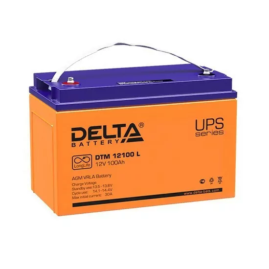 Краткое описание Герметизированный VRLA cвинцово-кислотный аккумулятор Delta DTM 12100 L напряжением 12В и емкостью 100Ач изготовлен по технологии AGM (с микропористым заполнителем, пропитанным электролитом). Корпус изготовлен из негорючего ABS пластика. Срок службы аккумулятора достигает 12 лет. Аккумулятор предназначен для работы в режиме постоянного подзаряда (буферный режим) или в режиме разряд-заряд (циклический режим). Обладает низким внутренним сопротивлением и саморазрядом. Дополнительно к аккумулятору у нас можно подобрать зарядное устройство для него, батарейный шкаф или стеллаж. Технические характеристики Номинальное напряжение 12 В Число элементов 6 Срок службы 10-12 лет Номинальная емкость (25oС) 10 часовой разряд (10 А; 1.80 В/эл) 100 Ач 5 часовой разряд (16.83 А; 1.75 В/эл) 84.15 Ач 1 часовой разряд (63.05 А; 1,60 В/эл) 63.05 Ач Саморазряд 3% емкости в месяц при 20oС Внутреннее сопротивление полностью заряженной батареи (25oС)5 мОм Особенности Технология AGM позволяет рекомбинировать до 99% выделяемого газа; Нет ограничений на воздушные перевозки; Соответствие требованиям UL, IEC, Гост Р; Легированные кальцием свинцовые пластины обеспечивают низкий саморазряд, высокую конструктивную прочность решетки; Необслуживаемые. Не требует долива воды; Высокая плотность энергии; Корпус аккумулятора выполнен из пластика ABS, не поддерживающего горение. Рабочий диапазон температур Разряд -20÷60 Заряд -10÷60 Хранение -20÷60 Макс. разрядный ток (25oС) 900 А (5с) Циклический режим (2.3÷2.35 В/эл) Макс.зарядный ток 30 А Температурная компенсация 30 мВ/oС Буферный режим (2.23÷2.27 В/эл) Температурная компенсация 19 мВ/oС Габариты (±1мм) Длина, мм330 Ширина, мм 171 Высота, мм 215 Полная высота, мм 220 Вес (±3%), кг 29