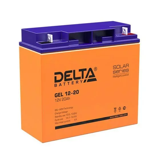 Краткое описание Свинцово-кислотный аккумулятор Delta GEL 12-20 напряжением 12В и емкостью 20Ач изготовлен по технологии AGM+GEL: combined AGM and GEL technology (частичное сгущение электролита). Устойчив к глубоким разрядам. Корпус изготовлен из негорючего ABS пластика. Срок службы аккумулятора достигает 10-12 лет. Аккумулятор предназначен для работы в режиме постоянного подзаряда (буферный режим) или в режиме разряд-заряд (циклический режим). Обладает низким внутренним сопротивлением и саморазрядом. Дополнительно к аккумулятору у нас можно подобрать зарядное устройство для него, батарейный шкаф или стеллаж. Технические характеристики Номинальное напряжение 12 В Число элементов 6 Срок службы 10-12 лет Номинальная емкость (25oС) 20 часовой разряд (1 А; 1.75 В/эл) 20 Ач 10 часовой разряд (1.79 А; 1.75 В/эл) 17.9 Ач 5 часовой разряд (3.15 А; 1.75 В/эл) 15.75 Ач Саморазряд 3% емкости в месяц при 20oС Внутреннее сопротивление полностью заряженной батареи (25oС)12.5 мОм Особенности Продолжительный срок службы; Технология AGM+GEL; Устойчивость к глубоким разрядам; Температурная стабильность характеристик; Исключены утечки кислоты, гарантирована безопасная эксплуатация с другим оборудованием; Отсутствует газовыделение, достаточно естественной вентиляции; Нет необходимости в контроле уровня и доливе воды; Корпус аккумулятора выполнен из пластика ABS, не поддерживающего горение. Рабочий диапазон температур Разряд -20÷60 Заряд -10÷60 Хранение -20÷60 Макс. разрядный ток (25oС) 240 А (5с) Циклический режим (2.3÷2.35 В/эл) Макс.зарядный ток 4 А Температурная компенсация 30 мВ/oС Буферный режим (2.23÷2.27 В/эл) Температурная компенсация 19.8 мВ/oС Габариты (±1мм) Длина, мм181 Ширина, мм 77 Высота, мм 167 Полная высота, мм 167 Вес (±3%), кг 5.22