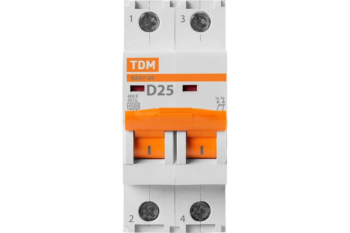 Автоматический выключатель TDM ВА47-29 2Р 25А 4.5кА D SQ0206-0159 повышает защищенность распределительных и групповых цепей от короткого замыкания и перенапряжения. Устройство обеспечивает проведение тока в нормальном режиме. Технические характеристики: Тип: модульный Тип расцепления: D Модельный ряд: ВА47-29 Тип монтажа : на DIN-рейку Номинальное напряжение: 230/400 В Отключающая способность: 4.5 кА Степень защиты: IP20 Количество полюсов: 2 Климатическое исполнение: УХЛ-4 Цвет корпуса: белый Номинальный ток: 25 А Вес нетто: 0.22 кг Высота: 80 мм Ширина: 35 мм Глубина: 75 мм Преимущества: Кривая D - отключит ток в цепи в 10-14 раз больше номинального. Корпус и детали автоматического выключателя TDM ВА47-29 2Р 25А 4.5кА D SQ0206-0159 выполнены из пластика не поддерживающего горение; Маркировка не подвержена стиранию в пределах срока эксплуатации; Соответствует стандартам ГОСТ Р 50345-99; Номинальная отключающая способность: 4500 А; Напряжение постоянного тока: 48 В/полюс; Условия эксплуатации УХЛ4; Электрическая износостойкость, циклов В-О: не менее 6 000; Механическая износостойкость, циклов В-О: не менее 20 000; Максимальное сечение присоединяемых проводников: 25 мм2 - для многожильного проводника, 35 мм2 - для одножильного; Наличие драгоценных металлов (серебро): 0,15÷0,22 г/полюс; Диапазон рабочих температур: от -40 до +50 °С; Момент затяжки: 3 Н*м; Защелка на DIN-рейку с фиксацией упрощает монтаж и демонтаж аппарата; Наличие двойного одновременного подключения шины и проводника значительно расширяет диапазон возможных схемных решений; Универсальная головка усиленного винта клеммного зажима позволяет использовать как крестовую, так и шлицевую отвертку - это обеспечивает необходимое усилие при затяжке; Может устанавливаться в любом положении без изменения номинальных характеристик; Подвод питающей линии может производиться как через верхние, так и через нижние клеммы, без нарушения работоспособности; На лицевой панели реализован механический индикатор положения контактов (включено/отключено); Эргономичная рукоятка управления, исключающая соскальзывание пальцев; Клеммные зажимы автомата промаркированы, что позволяет избежать ошибок при монтаже; Ширина модуля составляет 17,5 мм - это позволяет устанавливать автоматы в щитки, рассчитанные на ширину модуля до 18 мм; Наличие шести заклепок позволяет усилить конструкцию аппарата и предотвратить деформацию корпуса при затягивании клеммных винтов; Контактные группы снабжены серебряными вставками для увеличения срока службы контактов посредством увеличения износоустойчивости - это уменьшает переходное сопротивление и тепловые потери; Насечки на контактных зажимах предотвращают перегрев и оплавление проводов за счет более плотного и большего по площади контакта; Геометрия боковых поверхностей изделия разработана для улучшения теплового режима работы; Конструкция клеммных зажимов позволяет исключить случайное прикосновение к токоведущим частям; Подробная инструкция по монтажу и эксплуатации позволяет легко монтировать автомат даже начинающему монтажнику; Конструкция выключателя предусматривает два типа защиты от перегрузки и короткого замыкания, что существенно повышает защищенность распределительных и групповых цепей; Антипригарная пластина защищает корпус аппарата от прогорания при коротких замыканиях; Возможность пломби