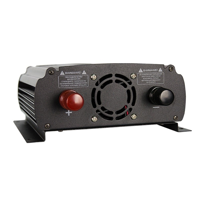 Номинальная мощность (ВА): 1200 Номинальная мощность (Вт): 1000 Максимальная нагрузка (Вт): 1000 Номинальное напряжение на входе (В): 12 Диапазон напряжений на входе (В): 11-15,5 Постоянный ток (мА): 600 Выходное напряжение (В): 220 Форма выходного напряжения: Cтупенчатая аппроксимация синусоиды Выходная частота (Гц): 50/60 КПД работы инвертора: 92% Функция заряда аккумулятора: Нет Защита от перегрузки: Автоматическое отключение при потреблении 120 % от номинальной мощности инвертора Защита от короткого замыкания: Автоматическое отключение нагрузки при коротком замыкании в цепи нагрузки Защита аккумулятора от глубокого разряда: При входном напряжении ниже 9.8 В инвертор отключается Защита от повышенного входного напряжения: При входном напряжении выше 15.5 В инвертор отключается Защита от перегрузки по току: Есть автоматический предохранитель Защита от перегрева: При нагревании элементов инвертора выше +90 °С, устройство автоматически выключается Система вентиляции: Принудительная, за счёт работы вентилятора Температура эксплуатации (°С): -15...+40 Относительная влажность: Не более 90% Уровень шума: Не более 45 дБ Класс защиты: IP20 Количество подключаемых к инвертору аккумуляторов (напряжением 12В): 1 Максимальная ёмкость подключаемой аккумуляторной батареи: 200 Ah Минимальная ёмкость подключаемой аккумуляторной батареи: 40 Ah Материал корпуса: Алюминиевый сплав Габаритные размеры (мм): 280х224х88 Вес (кг): 2,8 Вес брутто (кг): 3,2 Производитель: Энергия Cтрана производства: Россия Гарантия: 12 месяцев Расчетный срок службы: 10 лет