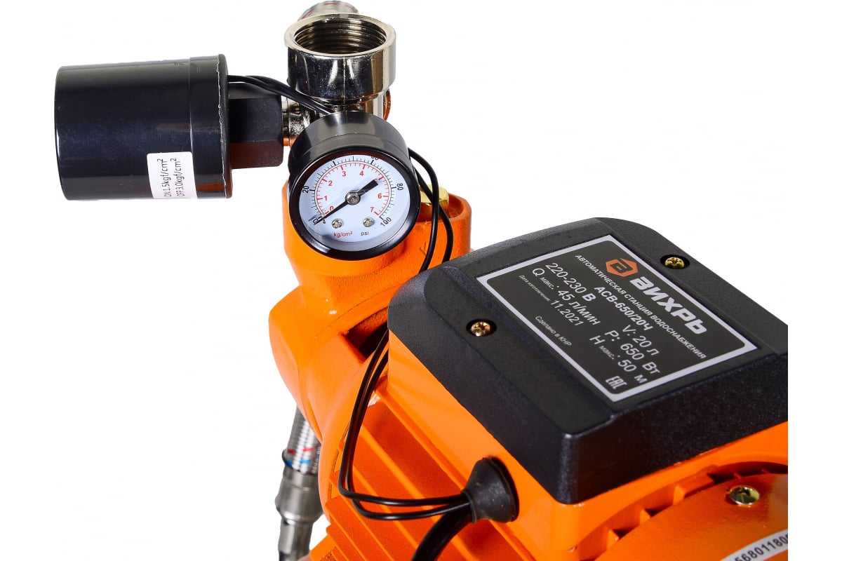 Насосная станция предназначена для бесперебойного водоснабжения в автоматическом режиме, коттеджей, дач, ферм и других потребителей. При этом она автоматически поддерживает необходимое давление в системе водоснабжения, самостоятельно включаясь и отключаясь по мере расходования воды потребителями. Диаметр выходного отверстия, дюйм 1 Частота, Гц 50 Объем бака, л 20 Высота напора, м 50 Глубина всасывания, м 9 Тип двигателя Электрический Материал Чугун Мощность, Вт 650 Напряжение сети, В 220 Гарантия, мес. 12 Бренд Вихрь Максимальная производительность, л/мин 45