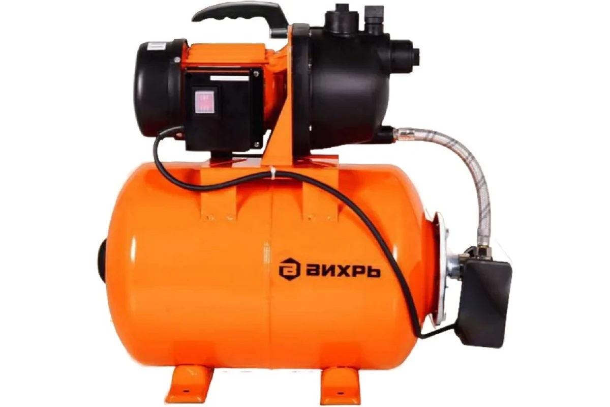 Автономная станция водоснабжения Вихрь АСВ-1500/24 обеспечивает стабильную подачу воды в автоматическом режиме для коттеджей, дач и других объектов. Она сама контролирует давление в системе и при необходимости включается или выключается, поддерживая бесперебойную работу в зависимости от расхода воды. Оснащённая электрическим двигателем мощностью 1500 Вт, она способна поднимать воду на значительную высоту до 50 м, обеспечивая высокую производительность до 95 л/мин. Благодаря этому, станция справляется с обслуживанием крупных домохозяйств, обеспечивая постоянное наличие чистой питьевой воды в необходимых объёмах. Система оборудована удобными стандартными штуцерами диаметром 1 дюйм, облегчающими подключение и интеграцию в существующие водопроводные коммуникации. Важной особенностью устройства также является способность стабильно поддерживать работоспособность при глубине погружения до 9 м, позволяя использовать продукт с разнообразными видами скважин и колодцев. Корпус изделия изготовлен из прочного пластика, устойчивого к воздействию внешней среды и коррозионных процессов. Электродвигатель, выполненный по схеме асинхронного типа с короткозамкнутым ротором, обладает надежной конструкцией и длительным сроком службы. Важно отметить, что станция способна эффективно функционировать даже при относительно высоких показателях загрязнения воды допускаемая концентрация твердых частиц составляет до 150 г/м³. Технические характеристики: Производительность 95 л/мин Высота подъема 50 м Вид поверхностный Тип автоматическая насосная станция Конструкция установка насосная Мощность 1500 Вт Объем бака 24 л Мах температура жидкости 35 °С Трубное соединение 1 дюйм Материал помпы пластик Материал крыльчатки пластик Защита от сухого хода есть Ротор мокрый Для повышения давления есть Эжектор нет Поддержка постоянного давления да Серия АСВ Напряжение 220/230 В Давление 4 атм Класс защиты IP54 Материал корпуса насоса ABS-пластик Глубина всасывания 9 м Габариты без упаковки 470×470×470 мм Вес нетто 15.45 кг Преимущества: Эффективному распределению ресурсов способствует компактный гидроаккумулятор ёмкостью 24 л, стабилизирующий давление в системе и снижающий частоту запуска насоса Количество твердых частиц в воде не превышало 150 г/м³ Высокий напор и функция самовсасывания воды с глубины до 9 метров Верхнее расположение муфты, реле и манометра Функция самовсасывания с глубины до 9 м в сочетании с высоким напором 50 м Центробежный насос - Отличается плавной подачей воды и низким уровнем шума Производительность 95 л/мин: бесперебойная работа 4 потребителей Асинхронный двигатель - Имеет простую конструкцию и повышенный рабочий ресурс Корпус из нержавеющей стали - Устойчив к коррозии и позволяет продлить срок службы станции Класс защиты IP54 позволяет использовать насос во влажных помещениях
