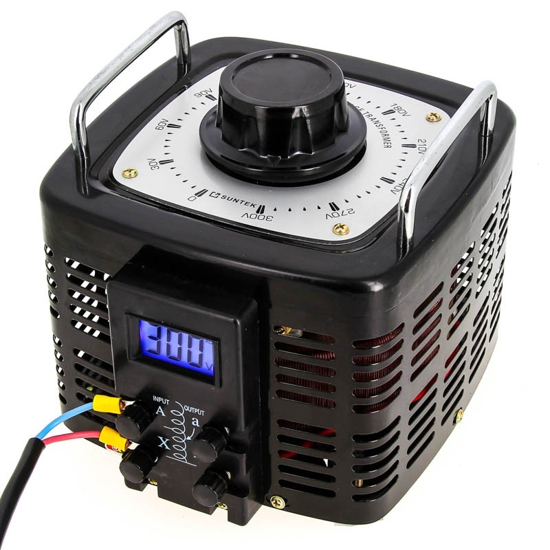 Устройство ЛАТРа (лабораторного автотрансформатора) просто и не требует дополнительного обслуживания. При соблюдении условий эксплуатации и правильном выборе нагрузки он прослужит долгое время. Гарантийный срок -24 месяца. ЛАТР SUNTEK - простое и надежное устройство, широко применяемое как в научно-опытных целях, так и в быту и повседневной жизни. Номинальная мощность, ВА 3000 Максимальный ток, А 12 Рабочий диапазон входных напряжений, В 0-250 Ном. диапазон выходного напряжения, В 0-300 Тип стабилизации - Погрешность выходного напряжения,% менее 1% Регулировка ручная Искажение синусоиды отсутствует Вариант подключения клеммы ( комплект для подключения) Рабочий диапазон t°С -5 - +40 Охлаждение пассивное Способ подключения в сеть клеммы Потребляемый ток, А - Корпус металл Защита от к/з - Грозозащита - Габаритные размеры д-ш-в, см 20х21х23 Вес, кг. 10 Специальный однофазный автотрансформатор типа ЛАТР с цифровой индикацией, предназначен для плавного регулирования напряжения от 0 до 250В под нагрузкой без разрыва цепи в сети 220В 50Гц. Сферы применения -во всех случаях, где требуется нестандартное напряжение, а также: -применяется на производствах, где требуется регулирование температуры; -в конструкции некоторых моделей стабилизаторов напряжения; -как дополнительное устройство к транзисторным самописцам, станкам; -в научных лабораториях; -на производствах занимающихся проектированием и наладкой ТВ приемников и др. бытовой техники; -при испытаниях плавких предохранителей, регулирование реле, автоматов, ограничителей тока и др.; -в нефтяной и пр. промышленностях. Во всех моделях предусмотрено наличие метровой шкалы и цифрового вольтметра, отражающего выходное напряжение
