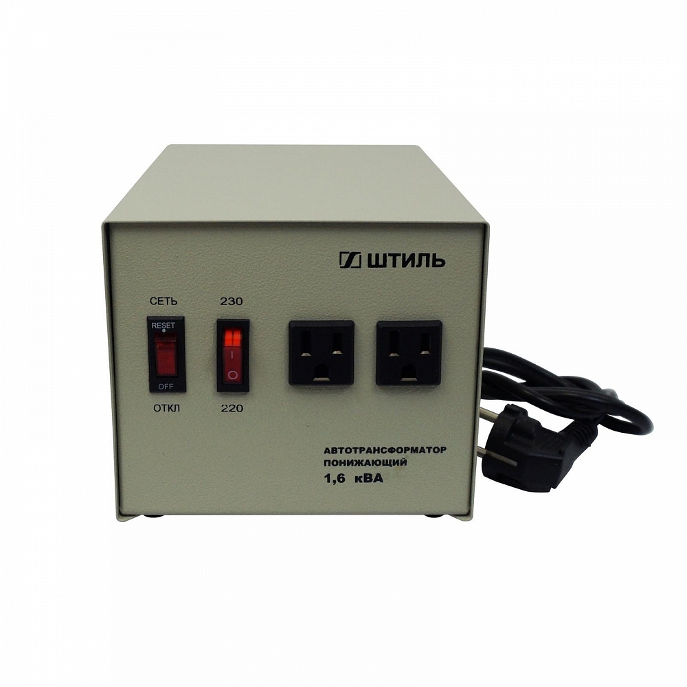 Понижающие автотрансформаторы "Штиль" предназначены для электропитания приборов, аппаратуры и устройств переменным током напряжением 110 В от стандартной электросети с напряжением 220 В или 230 В. Модель: АТ 230-220/110-1,6-50 Максимальная мощность нагрузки, кВА: 1,6 Входное напряжение, В: 230, 220 (±10%) Диапазон выходного напряжения, В: 110 (при номинальной нагрузке) 115 (на холостом ходу) Частота, Гц: 50±5% Максимальный выходной ток, А: 14,5 КПД, %: 95 Длина провода, м: 1,3 Размер без упаковки (ШхВхГ), мм: 155x140x220 Размер в упаковке (ШхВхГ), мм: 170x160x270 Масса, кг: 8,9 Масса в упаковке, кг: 8,9 Изделие представляет собой понижающий однофазный преобразователь напряжения, состоящий из следующих основных частей: металлический корпус, понижающий автотрансформатор на тороидальном сердечнике, автоматический выключатель "СЕТЬ", переключатель "220-230 В", позволяющий выбрать напряжение сети, две розетки американского стандарта для подключения нагрузки на 110 Вольт, сетевой шнур с евровилкой. Автотрансформаторы "Штиль" могут быть использованы для электропитания зарубежной аппаратуры, рассчитанной на электропитающую сеть 50/60 Гц 110 В.