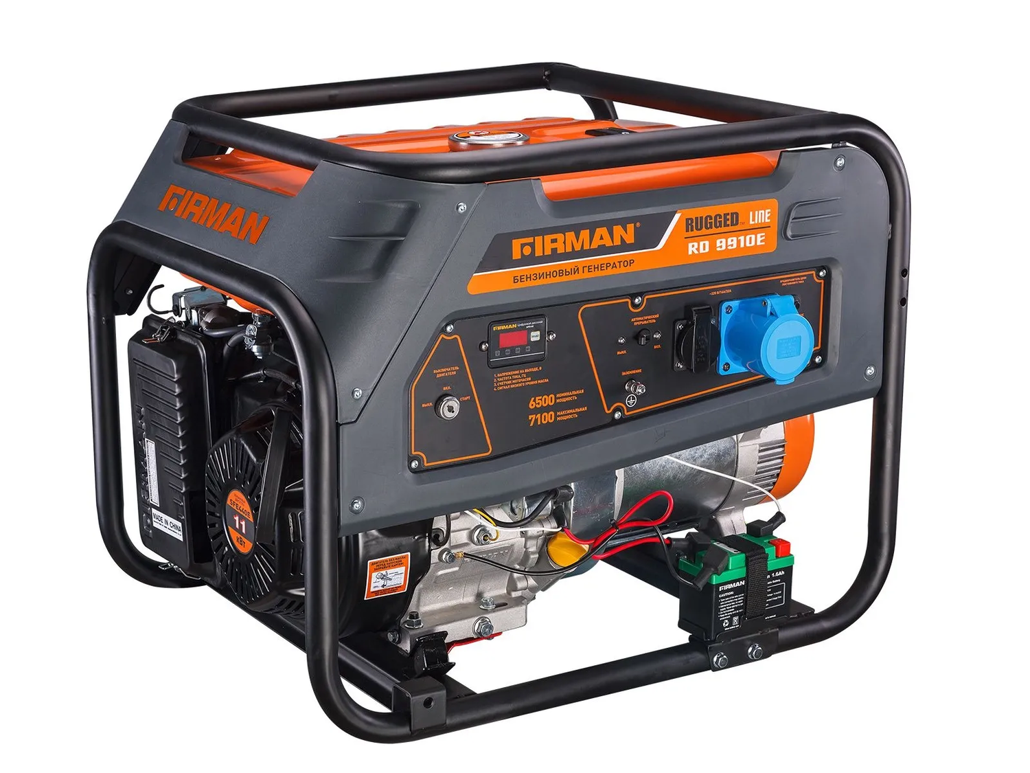 Бензиновая электростанция Firman RD9910E - это надежный источник электроэнергии в различных ситуациях. С этой электростанцией вы получаете номинальную мощность 6.5 кВт и максимальную мощность 7.1 кВт, обеспечивая достаточно ресурсов для разнообразных потребностей. Напряжение, В : 220 Номинальная мощность, Вт : 6500 MAX мощность, Вт : 7100 Емкость системы смазки, мл : 1100 Объем топливного бака, л : 25 Тип стартера : электро Мощность двигателя, л/с : 15 Объем двигателя, см3 : 439 Марка двигателя : SFE 440E Количество розеток 220 В : 1шт/16А; 1шт/32А Степень (класс) защиты : IP23 Габариты Д*Ш*В, мм : 810х560х575 Вес нетто, кг : 97 Комплект поставки включает в себя инструкцию, гарантийный талон, свечной ключ, ключ зажигания 2 шт, вилка 2 шт, переходник 12В, аккумуляторная батарея Li-Ion - все, что вам может понадобиться для удобной эксплуатации. Firman RD9910E оснащена системой пуска, включающей в себя надежный электростартер. Объем топливного бака составляет 25 литров, обеспечивая продолжительное время работы. Она также оборудована двумя выходами переменного тока и выходом 12 В для различных устройств. Эта электростанция спроектирована для стабильного электроснабжения, работая с напряжением 230 В и частотой 50 Гц. Сухой вес составляет 95 кг. Номинальная сила тока на фазу составляет 27.4 А, и она работает в однофазной системе с коэффициентом мощности 1. Уровень шума во время работы составляет 72 децибела. Мощный бензиновый двигатель Firman SFE440Е с объемом 439 кубических сантиметров и мощностью 15 лошадиных сил обеспечивает надежную работу. Двигатель охлаждается воздушной системой и имеет механическую систему регулировки оборотов.