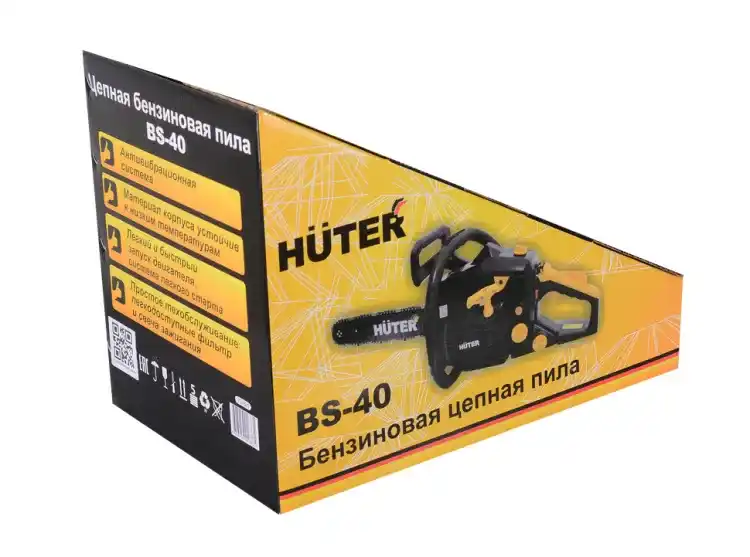 Цепная пила с карбюраторным двухтактным двигателем внутреннего сгорания, предназначена для продольной и поперечной распиловки древесины, валки деревьев, спиливания веток, заготовки дров и т. д.Модель имеет компактную шину длиной 40 см, толщина звена 1,3 мм, шаг цепи 3/8". Регулировка механизма натяжения цепи упрощена за счет бокового расположения на корпусе. Металлический маслонасос автоматически подает смазку, которая облегчает скольжение цепи, защищает металлические детали от перегрева, увеличивает срок службы агрегата. Емкость бака для смазки 210 мл. Объём двигателя, см3 40 Мощность, Вт 1900 Длина шины, мм 400 Толщина звена 1.3 / 3/8 Количество звеньев, шт. 57 Объем топливного бака, л 0.31 Объем масляного бака, л 0.21 Автоматическая смазка цепи Да Тормоз цепи Да Система гашения вибрации Да Класс товара Бытовой Гарантия, мес. 12 Страна бренда Германия Страна производства Китай Вес 6 кг Бренд Huter Габариты, см 29 х 25 х 42,5 Пила имеет плавный спуск и блокировку курка для защиты от случайного нажатия. Наличие щитка предотвращает риск травмирования в случае соскока или разрыва цепи. Модель оснащена резиновыми амортизаторами, снижающими вибрацию, что позволяет пользоваться устройством длительное время. Благодаря системе «Легкий старт», двигатель можно завести без особых усилий. Надежная, безопасная и простая в управлении бензопила HUTER BS-40 пригодится в любом загородном хозяйстве, обеспечит простоту продольной и поперечной распиловки древесины, заготовки дров.