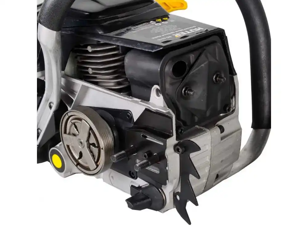 Бензопила HUTER BS-6218 - мощный инструмент для заготовки дров и валки деревьев. Горизонтальное расположение двигателя дает лучшее распределение массы и делает бензопилу компактной. Обладает высокой точностью реза Мощность, Вт 3300 Толщина звена 1.5 мм Количество звеньев, шт. 72 Объем топливного бака, л 5.6 Объем масляного бака, л 2.6 Автоматическая смазка цепи Да Тормоз цепи Да Бренд Huter Габариты упаковки мм 450 х 430 х 300 Вес 7.25 кг Длинна шины 450 мм Система гашения вибрации Да Вид топлива Бензин АИ-92+масло для 2Т двигателей Тип двигателя Бензиновый 2-х тактный с воздушным охлаждением Тип стартера Ручной Мощность, л.с. 4.5 Шаг цепи 0,325 Безопасности в этой модели уделено много внимания. Блокировки курка газа предотвращает случайное нажатие. Функция механического инерционного тормоза цепи также важна: при резком отскоке пилы во время пиления (вверх и назад) рука упирается в ручку тормоза и отщелкивает ее, а тормозная лента затягивается и тормозит барабан сцепления, цепь при этом останавливается практически мгновенно. Защитный щиток в случае разрыва цепи или ее соскока с шины предотвращает травмирование. Резиновые амортизаторы, расположенные между рукоятками и картером пилы, снижают вредную вибрационную нагрузку при работе с бензопилой, делают работу комфортнее. Принудительная смазка цепи и шины применяется для снижения трения между ними, что увеличивает срок службы пильной гарнитуры. Легкий старт влияет на скорость запуска, особенно в зимний период. Он добавляет дополнительный крутящий момент при рывке.