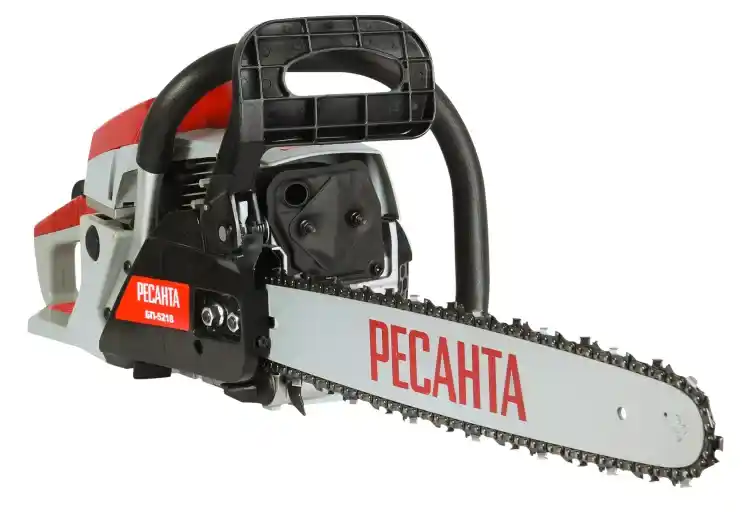 Бензопила БП-5218 Ресанта. Этот мощный агрегат обладает долговечной конструкцией, отличной маневренностью, позволит справиться с задачами любого уровня сложности. Бензопил имеет длину шины 18 дюймов и количество звеньев цепи - 72 звена. Резиновые амортизаторы, расположенные между рукоятками и картером пилы, снижают вредную вибрационную нагрузку при работе с бензопилой, делают работу комфортнее. Масляный бак размещается в передней части картера. Принудительная смазка цепи и шины применяется для снижения трения между ними, что увеличивает срок службы пильной гарнитуры. Легкий старт влияет на скорость запуска, особенно в зимний период. Он добавляет дополнительный крутящий момент при рывке. Безопасности в этой модели уделено много внимания. Блокировки курка газа предотвращает случайное нажатие. Функция механического инерционного тормоза цепи также важна: при резком отскоке пилы во время пиления (вверх и назад) рука упирается в ручку тормоза и отщелкивает ее, а тормозная лента затягивается и тормозит барабан сцепления, цепь при этом останавливается практически мгновенно. Защитный щиток в случае разрыва цепи или ее соскока с шины предотвращает травмирование. Объём двигателя, см3 52 Мощность, Вт 2800 Длина шины, мм 450 Толщина звена 1.5 / 0,325 Количество звеньев, шт. 72 Объем топливного бака, л 0.55 Объем масляного бака, л 0.26 Тормоз цепи Да Система гашения вибрации Да Гарантия, мес. 12 Габариты упаковки мм 440 × 275 × 325 Вес, кг 6.95 кг Преимущества: - Боковое расположение механизма натяжения цепи; - Комбинированная система управления заслонками карбюратора; - Регулируемый карбюратор отличается удобством и простотой настройки; - Ручной топливный насос предназначен для облегчения первого запуска; - Металлический маслонасос обеспечивает принудительную подачу смазки цепи и шины; - Быстросъемная крышка воздушного фильтра значительно упрощает обслуживание воздушного фильтра; - Быстросъемный воздушный фильтр легко снимается, прост в обслуживании; - Быстросъемный механизм тормоза пильной цепи облегчает очистку пилы от опилок; - Система амортизации состоит из трех демпфирующих втулок. Удачное техническое решение привело к существенному снижению вибрации при работе двигателя и сделало работу более комфортной; - Хромовое покрытие поршневой группы; - Цепь и шина в комплекте; - Укороченная шина для большей передачи мощности.