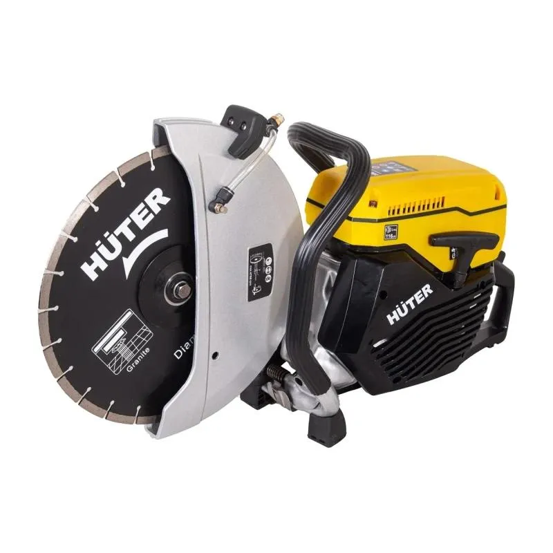 Бензорез Huter GC-7414B с карбюраторным двухтактным двигателем внутреннего сгорания представляет собой абразивно-отрезную машину для сухой или мокрой резки асфальта, бетона, камня и других минеральных пород, а также для резки различных металлов с использованием алмазных или абразивных отрезных кругов. Бензорез обеспечивает точный и ровный рез без привязки к источнику питания. Универсальная втулкапозволяет устанавливать диски с посадочными отверстиями 20 или 25,4 мм. Усиленный пылезащищенный стартер практически не нуждается в обслуживании и обеспечивает долговечность. Антивибрационная система на рукоятках снижает вибрацию инструмента до 2,5 кв.м/с. Пылезащищенная трансмиссия снижает риск проскальзывания и преждевременного износа двигателя. Время эксплуатации значительно превосходит средние показатели. Высокоэффективный динамичный двигатель с высоким крутящим моментом. Режущий диск идет в комплекте. Преимущества Бензиновый бетонорез с кейсом Бензорез GC-7414B имеет мощный 2-х тактный двигатель Кожух пильного диска регулируется без каких-либо специальных инструментов Натяжной механиз ремня скрыт под защитным кожухом Режим влажной резки продлевает срок службы диска Система подачи воды с универсальным штуцером Декомпрессионный клапан для облегченного запуска Улучшенная система поглощения вибрации Двухкомпонентный воздушный фильтр большой площади Реверсивный режущий узел для подрезки у края Усиленный пылезащищенный стартер Рукояти расположены на оптимальном расстоянии: центр тяжести приближен к оператору Поликлиновый ремень эффективно передает мощность, не требует частого натяжения и увеличивает срок службы Тормоз диска сокращает время вращения при отключении двигателя Пылезащищенная трансмиссия снижает риск проскальзывания и преждевременного износа двигателя Возможность установки на тележку Высокоэффективный динамичный двигатель с высоким крутящим моментом Диск в комплекте Дополнительные характеристики: Диаметр диска, мм 350 Посадочный диаметр, мм 25.4 Диаметр диска 350 мм Диаметр диска (дюйм) 14 Глубина резания 125 мм