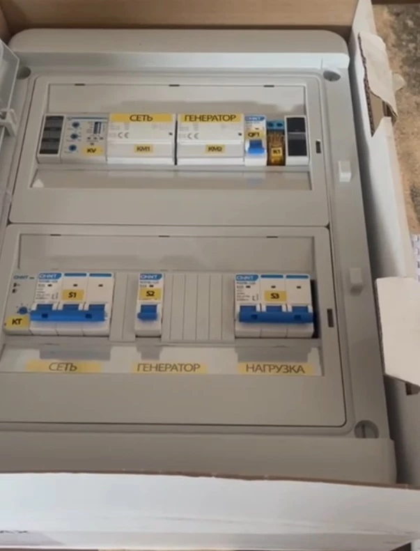 Блок автоматического ввода резерва GM-63-3/3-2WS (GM20). Блок АВР (Автоматического Ввода Резерва). Мощность 63А. Класс защиты: IP 65. Подключение к сети: три фазы. (для GM20000) Генератор Mitsui Power Eco совместим с блоком автоматического запуска. Без этого блока, генератор не будет заводиться автоматически и подключать всю нагрузку на себя. Запуск будет осуществляться с помощью кнопки электростартера на панели управления. Возможна установка GSM-модуля для удалённого мониторинга работы электростанции.