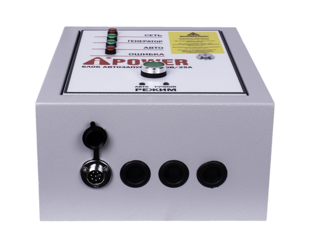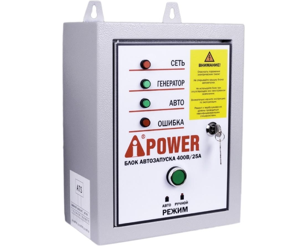 Блок Автоматического ввода резерва. Автоматически запустит Ваш генератор A-iPower, если в доме отключится центральное электроснабжение. Блок автозапуска подходит для бензиновых генераторов A-iPower A7500TEA, A8500TEA. Это устройство сделает Ваш генератор A-iPower автономным источником резервного электроснабжения. Блок автозапуска самостоятельно запустит генератор и автоматически заглушит его, когда в центральной электросети снова появится напряжение. В комплекте идёт длинный 8-метровый соединительный провод. Вес брутто / нетто, кг: 6 Габаритные размеры упаковки, мм: 430*235*335
