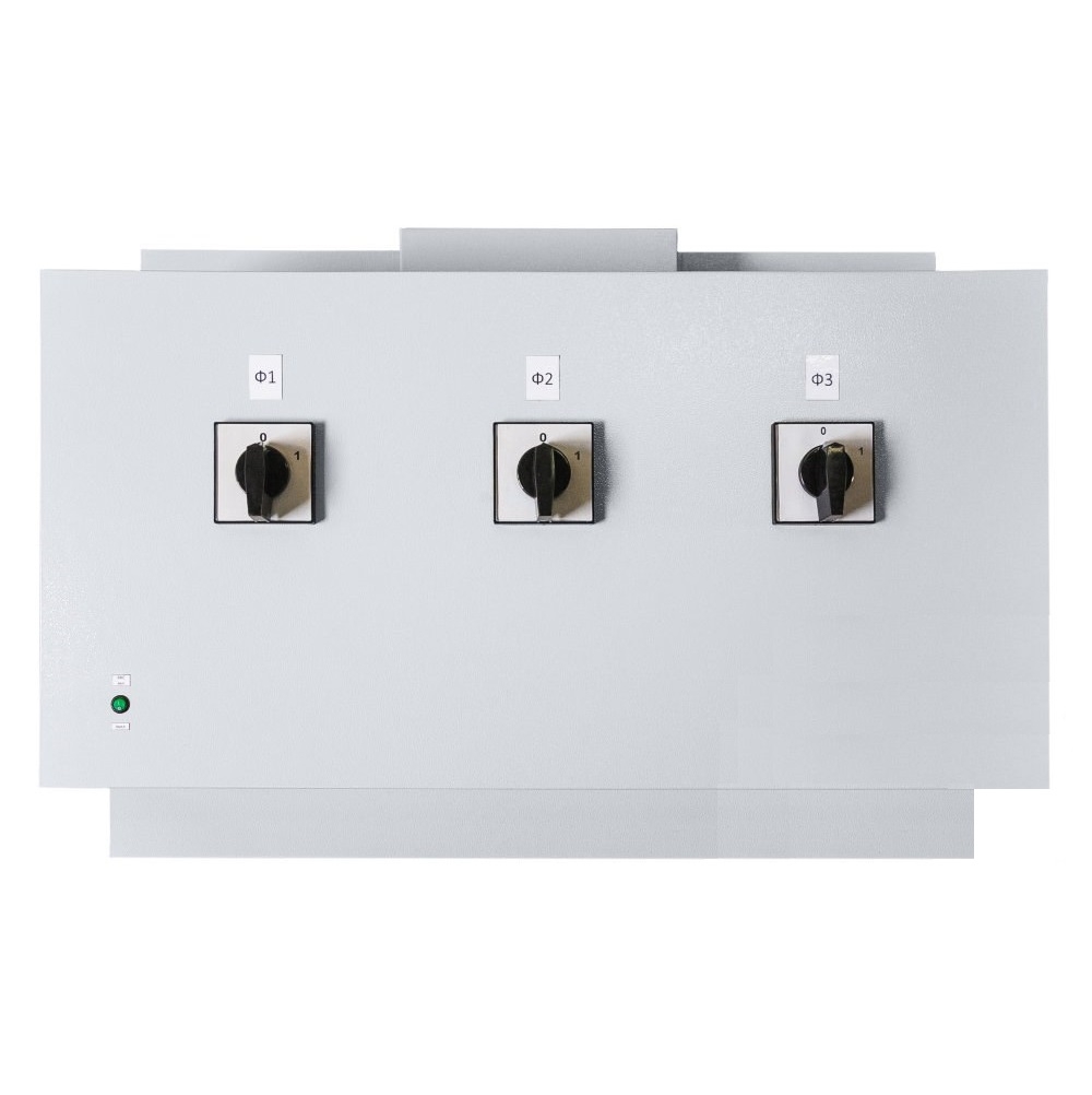 Блок коммутации Progress 60 кВА измеряет электрические параметры трёхфазной сети и защищает подключенное электрооборудование. Выполнен в металлическом корпусе настенного исполнения, внутри которого расположены плата управления на базе микропроцессора, магнитные пускатели и блоки клеммных зажимов. Функционально блок коммутации состоит из БКС (блока контроля сети) и ручного байпаса. Основные функции БКС: проверка наличия всех фаз и отключение трёхфазной нагрузки при пропадании хотя бы одной фазы; контроль напряжения на выходах стабилизаторов и отключение нагрузки если разность напряжения между двумя фазами более 60 В. Переключатели режимов «работа-байпас» позволяют отключать стабилизаторы без перерыва в электроснабжении нагрузки. Блок коммутации применяется с 3-х фазными стабилизаторами переменного напряжения Progress (Прогресс) до 60 кВА. Габариты, мм: 650х500х200 Класс защиты: IP20 Масса, кг: 18 Относительная влажность, %: не более 80 Гарантия: 3 года Климатическое исполнение: УХЛ 4.2 Диапазон температуры окружающей среды,°С: от +5 до +40 Байпас: Есть