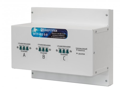 Модуль трехфазный внешнего байпаса и синхронизации фаз БКС, предназначен для объединения трех любых однофазных стабилизаторов напряжения для работы в трехфазном режиме. Модуль БКС может быть использован без стабилизаторов напряжения, для организации защиты трехфазных нагрузок от неполнофазного режима. Максимальная мощность нагрузки по каждой фазе: 9, кВА Модели стабилизаторов, доступные для подключения через Модуль: Все модели стабилизаторов мощностью от 5 до 9 кВА Габаритные размеры Модуля: 235 × 525 × 350 (Г × Ш × В), мм Масса Модуля: 11, кг Температуре окружающей среды от -25 до +45 °C; Относительной влажности до 80% (при 25°C); Атмосферном давлении от 630 до 800 мм рт. ст. Модуль БКС обеспечивает: независимый монтаж стабилизаторов и модуля; быстрое подключение, возможность оперативной замены любого стабилизатора, либо отключение для осуществления ремонта в сервисном центре; время обесточенного состояния нагрузки при использовании внешнего байпаса не более 1 минуты; защиту от пропадания и асимметрии фаз для трехфазных нагрузок; бесперебойную работу однофазных нагрузок, при пропадании напряжения на соседней фазе; возможность, при необходимости, объединения стабилизаторов разной мощности и точности; задержку на отключение трехфазной нагрузки после пропадания напряжения на одной из фаз 3 секунды; задержку на включение трехфазной нагрузки после восстановления напряжения на всех трех фазах 5 секунд; защиту трехфазной нагрузки в режиме транзит от выхода напряжения за границы диапазона 180 260 В; Модуль БКС предназначена для объединения трех однофазных стабилизаторов напряжения для работы в трехфазном режиме. Модуль легко навешивается на кронштейн, крепящийся к стене. В нижней части Модуля БКС за защитной крышкой расположен ряд клеммников для подключения стабилизаторов напряжения. В верхней части за крышкой расположены клеммники для подключения входной линии и нагрузок. На передней панели блока расположены переключатели режимов работы каждого подключенного стабилизатора, «Стабилизация» «Транзит» и два светодиода индикации режима работы блока синхронизации. Внутри блока расположен контактор, который подает напряжение на трехфазный выход только, когда напряжение на всех трех фазах находится в диапазоне 180 260 В. При работе всех трех стабилизаторов в режиме «Стабилизация» блок контролирует только пропадание фаз. При переключении одного или нескольких переключателей в режим «Транзит», блок может отключить трехфазный выход при сильном отклонении напряжения (выходе за диапазон 180 260 В) на нестабилизированной фазе. Отключение трехфазной нагрузки при пропадании напряжения на одной из фаз происходит с задержкой в 3 секунды, в течение этого времени мигает красный светодиод «Авария». Кроме случая, когда отключилась фаза А, напряжение которой используется для питания контактора. В этой ситуации трехфазная нагрузка будет обесточена сразу, а не позднее чем через 1 секунду погаснет зеленый и загорится красный светодиод. Подключение трехфазной нагрузки контактором происходит с задержкой в 5 секунд после восстановления напряжения на всех трех фазах, в течение этого времени подмигивает (яркость свечения меняется от полной до половинной) красный светодиод «Авария». Для однофазных нагрузок на Модулю предусмотрены несинхронизированные выход