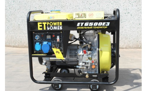 Дизельный генератор ET-Power ET6500E3. Модель двигателя: 192FE; Исполнение : открытая на раме ; Номинальная мощность, кВт: 6; Напряжение: 380 Вид топлива Дизель Номинальный ток в основном режиме, А 11 Объём масляной системы 1.65 л Розетка 220 В, шт 1 Розетка 400 В, шт 1 Тип охлаждения Воздушное Частота, Гц 50 Электростартер Ручной / Электро Модель ET6500S3 Двигатель 192FE Номинальная мощность 6 кВт Резервная мощность 6.5 кВт Номинальная мощность 7.5 кВА Напряжение 380 В Частота вращения коленчатого вала 3000 об/мин Расход топлива 1.68 Объем бака 16 л Габариты открытой на раме (Д×Ш×В) 910х530х760 мм Вес открытой на раме 160 кг Число фаз 3 Исполнение кожух