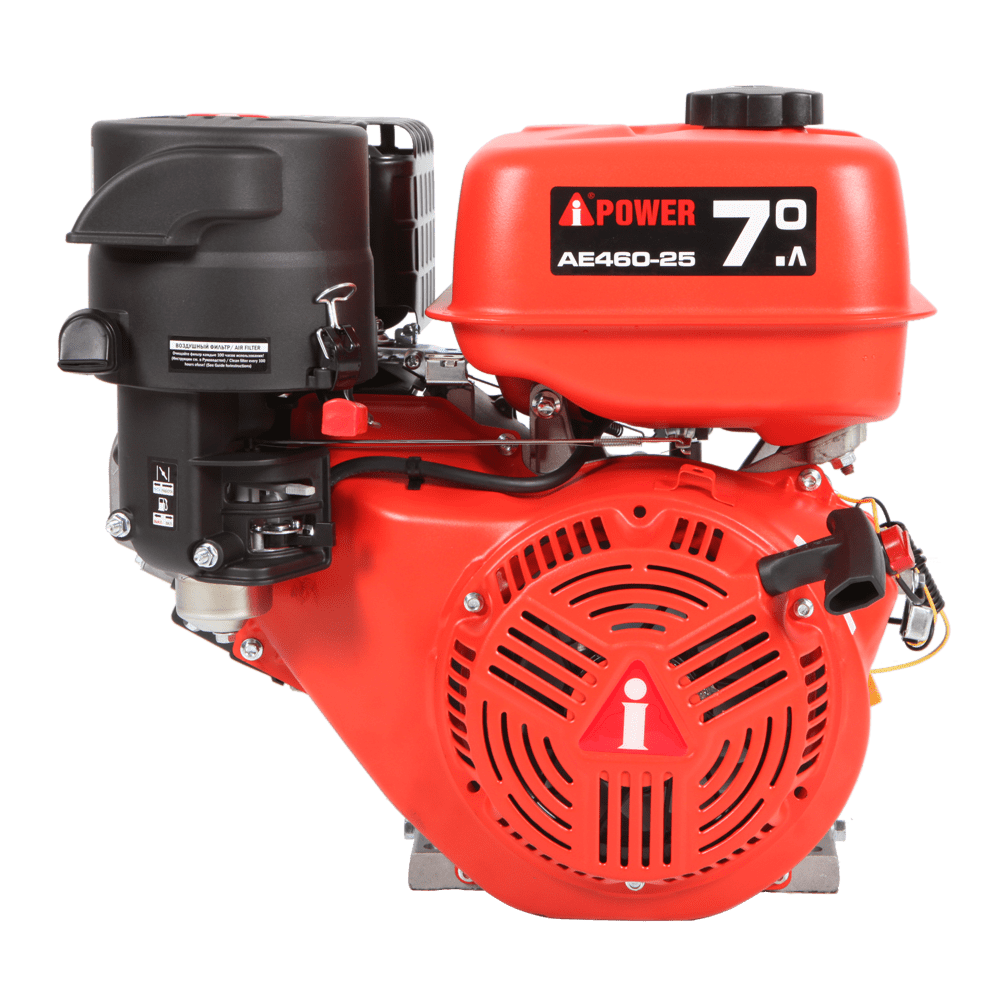 Бензиновый двигатель A-IPOWER AE460-25 4х-тактного типа с воздушным охлаждением устанавливается на генераторы, различную садовую, строительную, дорожную технику и другую силовую технику.Моторы серии OHV имеют верхнее расположение клапанов, за счет чего уменьшается расход топлива и снижается уровень выхлопных газов.Бензиновый двигатель A-IPOWER AE460-25 имеет горизонтальное расположение выходного вала, благодаря чему его можно устанавливать на любой тип техники. Тип: 4-тактный, OHV Производитель двигателя: A-iPower Скорость вращения (макс./ном), об/мин: 3600 Мощность, кВт/л.с. при 3000 об/мин: 10 кВт / 16 л.с. Тип топлива / класс: Бензин АИ-92 Наличие топливного фильтра: Да Материал топливного бака: Метал Тип масла, SAE: SAE 10W-30 Объем масляного картера, л: 1,1 Тип охлаждения: Воздушное Наличие топливного крана: есть Тип вала: Горизонтальный Диаметр вала, мм: 25 Катушка освещения: Нет Тип коленвала: Под шпонку Объём двигателя, куб.см : 460 Объем топливного бака, л: 7,5 Вес изделия, кг: 30,3 кг Вес в упаковке, кг: 33,3 кг Габаритные размеры изделия (ДхШхВ), мм: 510*445*485 Звуковое давление (дБ)А: 80 Стартер: Ручной