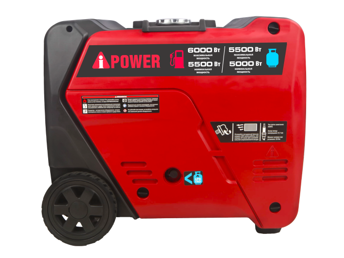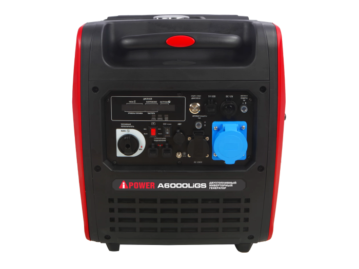 Инверторный бензиновый генератор A-iPower A6000LiGS - отличное решение для кемпинга, коротких выездов на природу. Такой генератор обеспечит электричеством портативную технику, телефоны, ноутбуки и небольшие колонки, которые чувствительны к постоянному току. Низкий уровень шума не будет мешать вашему отдыху. Особенность этой модели инверторного генератора заключается в двухтопливной заправке - вы можете использовать в качестве топлива и газ, и бензин. Генератор Максимальная мощность, кВт: 6,0 Номинальная мощность, кВт: 5,5 Сила тока, А: 21,7 А (бенз) / 19,6 А (газ) Коэффициент мощности (cos): 1 Класс защиты: IP23 Напряжение, В: 230 В Частота, Гц: 50 Гц Количество фаз: 1 Двигатель Тип: 4-тактный, OHV Производитель двигателя: A-iPower Тип топлива / класс: Бензин АИ-92 Наличие топливного фильтра: Да Тип масла, SAE: SAE 10W-30 Объем масляного картера, л: 0,7 Количество цилиндров: 1 Тип охлаждения: Воздушное Оснащение Сертификат СЕ: есть Вес изделия, кг: 58,3 Вес в упаковке, кг: 65 Габаритные размеры упаковки, мм: 710*560*610 Габаритные размеры изделия (ДхШхВ), мм: 640х500х540 Комплектация: Инверторный генератор/Инструкция по эксплуатации /Ключ свечной/Отвертка простая/Вилка электрическая 2 шт/Провода для зарядки АКБ 12В/Воронка/Шланг СУГ с регулятором Уровень шума на 7 м, дБ: 64 Класс изоляции: H Стартер: Ручной/Электро/ATS Ручка для транспортировки: Есть Цифровой дисплей: Есть Выход USB: Есть Разъем для подключения автоматики: Есть Система легкого старта позволяет справится с инверторным генератором даже необученному человеку. Не требуется ручной подкачки топлива, изучения сложной системы заслонок. Достаточно заправить генератор, поставить переключатель в нужное положение и запустить двигатель используя любой способ запуска - ручной старт, электростартер, АВР. Инверторный генератор A6000LiGS оснащен USB розеткой 5А для зарядки гаджетов и удобной розеткой 12V прикуривателя. Стандартная розетка 230В имеет защиту от влаги и пыли IP44. Наличие функции параллельного подключения позволяет объединить мощность 2-х генераторов. Это значительно расширяет возможности подключения устройств с увеличенным потреблением. Современная система выхлопа, глушитель и воздушный фильтр - все для комфортного использования в любых условиях. Экономичный режим работы генератора позволяет снижать расход топлива и экономить ресурс при не больших нагрузках. В таком режиме портативная цифровая электростанция A-iPower работает дольше и производит меньше шума за счет понижения количества оборотов двигателя. Обтекаемый корпус из крепкого пластика с ручкой для переноски позволяет легко транспортировать электростанцию. Такая форма хорошо размещается в багажнике авто и не испортит вещи, лежащие рядом.