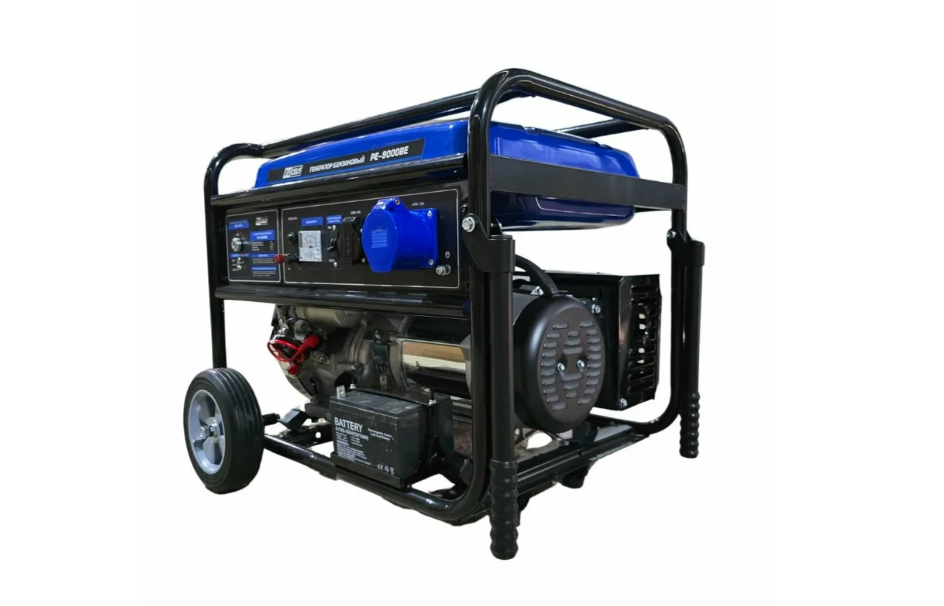 Бензиновый электрогенератор Rucelf PE-9000BE - это оптимальное устройство для производства электрической энергии в любом месте и имеет максимальную мощность подключения до 7500 Вт. Альтернатор изготовлен из 100% меди! Основные характеристики Модель генератора: Rucelf PE Тип электростанции: бензиновая Тип запуска генератора: электрический Электростартер: Да Активная мощность: 7 кВт Мощность двигателя, л.с: 17 Максимальная мощность, кВт: 7.5 Объем топливного бака: 25 л Напряжение, В: 230 Двигатель: 188P Число цилиндров: 1 Число тактов: 4 Тип охлаждения: воздушное Марка бензина: АИ-92 Расход топлива, л/час: 3.5 Количество оборотов: 3000 Альтернатор: синхронный Сила тока, А: 29.6 Глушитель: Да Защита от перегрузок: Да Колеса: Да Датчик масла, индикатор уровня топлива Силовой разъем: Да Число розеток (: Да Аккумулятор в комплекте: Да Габаритный размер: 70 × 56 × 56 см Вес: 98 кг Электростанция укомплектована ручками и колесами, что делает ее мобильной и позволяет без лишних усилий сменить место установки. В конструкции предусмотрен электрический стартер, что позволит завести генератор, в случае пропадания основного электроснабжения, абсолютно любому члену семьи или подключить автоматический ввод резерва, который будет запускать при необходимости самостоятельно. Нагрузку можно снять через силовой разъем или две розетки, расположенные на корпусе электрогенератора.