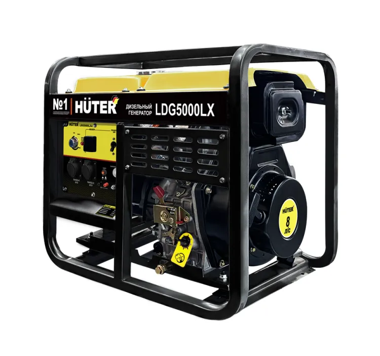 Дизельный генератор Huter LDG 5000LX мощностью 3300 Вт с 2 розетками и электростартером пригодится для автономного электроснабжения бытовой техники или оборудования при кратковременном отключении основного питания или его отсутствии на удаленном объекте. Синхронный щеточный электрогенератор оснащен двигателем мощностью 8 л. с., запуск которого осуществляется при помощи электростартера от АКБ 12 В или вручную. Топливный бак вмещает 14 л дизельного топлива, расход составляет 375 г/кВтч. В качестве смазки может использоваться масло SAE 10W-40 API: SL, SJ, SF, которое заливается в емкость 1100 мл. Модель имеет защиту от перегрева обмоток, перегрузки выходной сети, низкого уровня масла. Преимуществами дизельной мини-электростанции являются экономичное потребление топлива, длительный срок службы, простота обслуживания, возможность продолжительной непрерывной работы. Генератор в открытом исполнении оснащен прочной металлической рамой, которая не препятствует доступу ко всем механизмам и узлам. Установка весит 79 кг, имеет сравнительно компактные габариты. Надежная, удобная, экономичная модель Huter LDG 5000LX станет оптимальным выбором при поиске альтернативного источника электроэнергии для бытового использования на даче и других объектах, не подключенных к основной магистрали. Комплектация Дизельный электрогенератор 1 шт; Аккумуляторная батарея 1 шт; Масляная воронка 1 шт; Ключ электростартера 1 шт; Гаечные ключи 2 шт; Руководство по эксплуатации. Напряжение сети, В 220 Мощность, Вт 3000 Тип генератора Синхронный, щёточный Расход топлива, г/кВтч 375 Тип стартера Электростартер от АКБ12В + Ручной Тип топлива Дизельное Ёмкость системы смазки, мл 1100 Вес 79 кг Бренд Huter Ёмкость бензобака, л 14 Тип смазочного масла SAE 10W-40 API: SL, SJ, SF Максимальная мощность, Вт 3300 Номинальная частота переменного тока, Гц 50 Номинальная мощность двигателя, л.с. 8 Габариты упаковки 0.597 × 0.597 × 0.597 м Предподготовка для подключения АВР Да