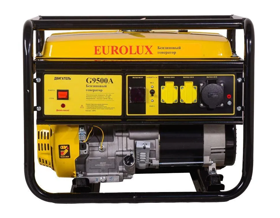 Электрогенератор бензиновый (бензогенератор) - электрическая машина, предназначенная для автономного электроснабжения в повторно-кратковременном режиме потребителей бытового и аналогичного назначения, относящихся к классу переносных электроприемников. В качестве первичного двигателя используется карбюраторный двигатель, топливом для которого является неэтилированный бензин. Электрогенератор имеет бытовое назначение. Количество фаз: 1 Максимальная мощность, Вт: 8500 Способ запуска: Ручной стартер Число тактов: 4 Номинальное напряжение, В: 220 230 Номинальная частота переменного тока, Гц: 50 Количество цилиндров: 1 Номинальная мощность двигателя, л.с.: 17 Тип топлива: Бензин АИ-92 неэтилированный Ёмкость бензобака, л: 25 Тип смазочного масла: SAE 10W-40, API: SL, SJ, SF Габариты упаковки: 0.609 × 0.609 × 0.609 м Вес, кг 83.24 кг