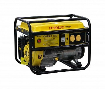 Бензиновый генератор Eurolux G6500A, используется для электропитания приборов с общей потребляемой мощностью до 5.5 кВт в местах с отсутствием стационарной электросети. Предусмотрена индикация уровня масла и топлива для своевременной дозаправки устройства. При коротком замыкании, подача тока отключается автоматически. Металлическая рама защищает внутренние элементы от ударов. Система стабилизация напряжения и защиты от короткого замыкание предотвращает поломку подключенного оборудования. Общие характеристики Двигатель: бензиновый, четырехтактный, одноцилиндровый Мощность, Вт: 5000/5500 Альтернатор: щеточный Емкость топливного бака, л: 15 Расход топлива, кг/час: 0,4 Система смазки: разбрызгиванием Стартер: ручной Напряжение, В: 220 Охлаждение: воздушное, принудительное Топливо: Бензин АИ-92 неэтилированный Частота, Гц: 50 Расход масла, г/кВтч: 6,8