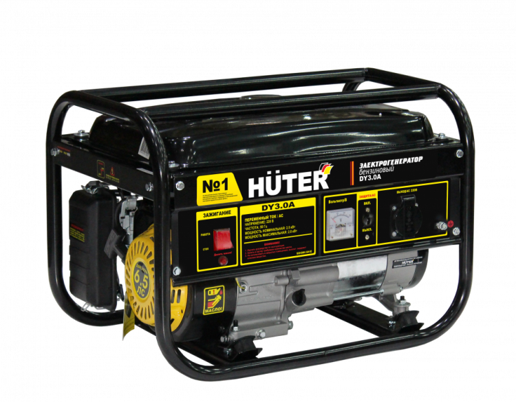 Электрогенератор (бензогенератор) - электрическая машина, предназначенная для автономного электроснабжения. В качестве первичного двигателя используется четырёхтактный карбюраторный двигатель, топливом для которого является неэтилированный бензин. Электрогенератор предназначен для получения электроэнергии в тех местах, где отсутствует магистральное электроснабжение. Это касается, как частных домов, где генераторы могут использоваться в качестве резервного источника питания, так и различных участков работ, где нужно электропитание для оборудования и проведения работ. Электрогенераторы HUTER много лет являются лидерами на российском рынке. Генераторы отличаются высоким качеством и надёжностью. Напряжение сети, В: 220 Частота, Гц: 50 Мощность, Вт: 2800 Вес кг 40.62 Коэффициент мощности: 1.0 Тип генератора: Синхронный, щёточный Расход топлива, г/кВтч: 360 Расход масла, г./кВтч: 6 Количество цилиндров: 1 Число тактов: 4 Тип стартера: Ручной Система подачи топлива: Свободный слив (самотек) Охлаждение: Воздушный принудительный Система зажигания: Магнето Тип свечи зажигания: F6TC, F7TC и аналогичные Система питания: Карбюратор Тип воздушного фильтра: Пористый полиуретан Тип топлива: Бензин АИ-92 неэтилированный Тип системы смазки: Разбрызгиванием в картере Объем топливного бака, л: 15 Ёмкость системы смазки, мл: 600 Тип двигателя: Бензиновый, 4-х тактный, одноцилиндровый Штрихкод EAN-13: 4606059033998 Преимущества: Защита от перегрузки. Защита от отсутствия и недолива масла. Защита от короткого замыкания. Медная обмотка альтернатора. Система регулировки оборотов позволяет экономить топливо и ресурс. Проверенные временем надёжные двигатели.