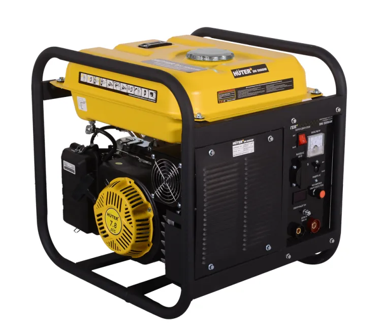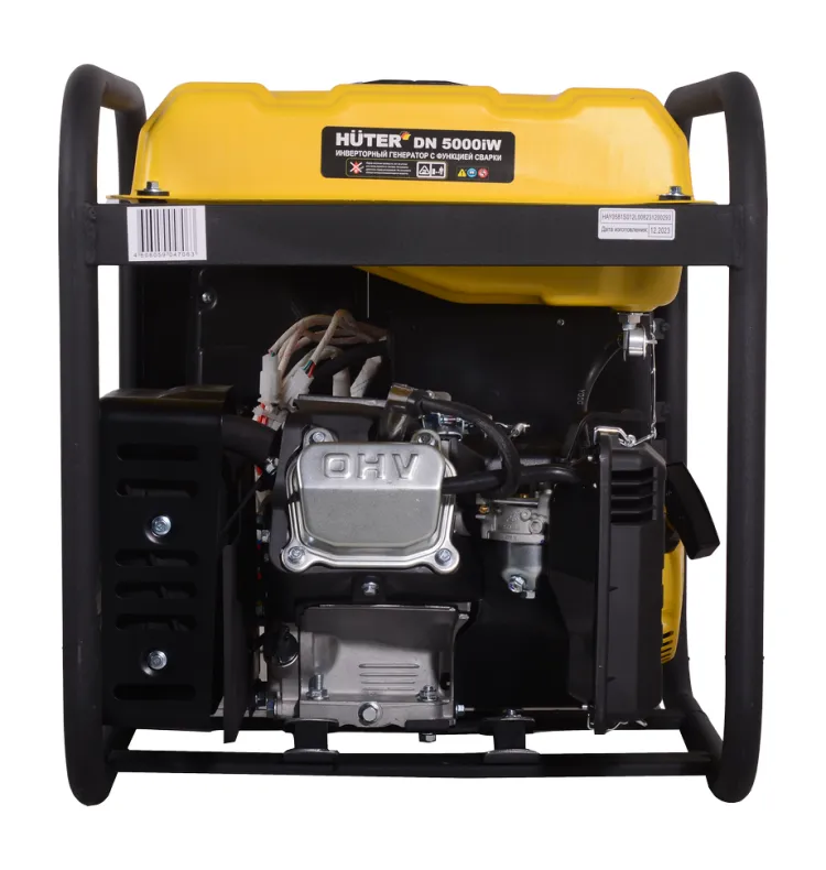 Электрогенератор инверторный Huter DN 5000iW, с функцией сварки выполняет роль автономного источника электроэнергии. Номинальная мощность 4200 Вт позволяет подключать бытовые приборы. Инверторная модель выдает минимальные искажения напряжения и частоты, что позволяет использовать ее для высокочувствительных электронных устройств: компьютеров, смартфонов, оргтехники, отопительных котлов, работающих от однофазной сети. В качестве топлива генератор использует бензин марки АИ-92. Экономичный расход 375 г/кВтч и вместительный бак объемом 18 л обеспечивают длительную непрерывную работу при полной нагрузке. Для уменьшения износа деталей генератора используется смазочное масло SAE 10W-40 API: SL, SJ, SF. Для него предусмотрен бак объемом 500 мл. Корпус открытого типа обеспечивает быстрый доступ к рабочим узлам для технического обслуживания. Электрогенератор инверторный Huter DN 5000iW, с функцией сварки мощностью 8 л.с. способен выполнять сварочные работы в ручном режиме ММА штучными электродами. Многофункциональное устройство может использоваться на природе, в частных домах и на дачных участках, не имеющих поблизости сетей электроснабжения, а также на строительных площадках. Запуск осуществляется с помощью ручного стартера. На панели управления имеется вольтметр и цифровой дисплей для контроля сварочного тока. Комплектация Бензиновый электрогенератор; Свечной ключ с воротком (либо с отвёрткой); Вилка 220В (16А); Масляная воронка; Руководство по эксплуатации. Напряжение сети, В 220 Мощность, Вт 4200 Тип генератора Инверторный Расход топлива, г/кВтч 375 Тип стартера Ручной Тип топлива Бензин АИ-92 неэтилированный Ёмкость системы смазки, мл 500 Вес 37.55 кг Бренд Huter Количество фаз 1 Ёмкость бензобака, л 18 Тип смазочного масла SAE 10W-40 API: SL, SJ, SF Максимальная мощность, Вт 4500 Номинальная частота переменного тока, Гц 50 Номинальная мощность двигателя, л.с. 8 Габариты упаковки 0.516 × 0.516 × 0.516 м Тип корпуса Открытый Функция сварки Есть