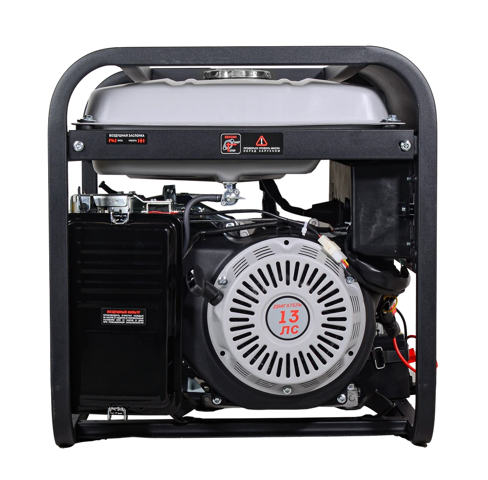 Генератор РЕСАНТА БГ 6500 Э имеет увеличенный ресурс двигателя, медную обмотку альтернатора. Оснащен многофункциональным цифровым дисплеем с индикацией величины напряжения, частоты тока и счетчиком моточасов; Модель БГ 6500 Э имеет 2 розетки 16 А. Агрегат оснащен надежным одноцилиндровым двигателем, который работает на неэтилированном бензине. Сфера применения установки включает в себя, как коммерческие объекты (магазины, ларьки, офисы), так и загородные дома, дачи, подсобные хозяйства. Внимание: Аккумулятор и комплект колес и ручек поставляется отдельно. Тип: Бензиновый Мощность, Вт: 5000 Охлаждение: Принудительное Напряжение сети, В: 220 Частота, Гц: 50 Вес без упаковки: 69.8 кг Вес в упаковке: 72.3 кг Гарантия, мес.: 36 Комплектация: Электрогенератор, Вилка разъёма, Паспорт (руководство по эксплуатации), Упаковка Габариты, см: 70 х 54 х 57 Штрихкод EAN-13: 4606059015079 Штрихкод GTIN: 04606059015079 Мощность, л.с.: 13 Уровень шума, дБ: 71 Тип стартера: Ручной Обороты, об/мин: 3600 Функция сварки: Нет Двигатель: 4-х тактный, одноцилиндровый Вид топлива: Бензин АИ-92, Пропан, Пропан-бутан Тип двигателя: Бензиновый Объем масляного бака, л: 1.1 Расход топлива, г/кВтч: 325 Объем топливного бака, л: 22 Особенности: - Генераторы имеют увеличенный ресурс двигателя; - Имеют медную обмотку альтернатора; - Оснащены многофункциональным цифровым дисплеем с функциями индикации величины напряжения, частоты тока и счетчика моточасов; - Все модели с электростартером (Э) имеют в комплекте аккумулятор; - Все модели имеют 2 розетки 16 А, а модели от 6500 и выше также имеют розетку на 32 А; - запуск двигателя через ручной стартер; - бюджетный вариант генератора при хороших параметрах; - низкий уровень шума; - небольшой вес и размеры. Преимущества: - Защита от перегруза и недостатка масла позволяют увеличить срок службы и предохраняет от непредвиденных ситуаций. - Антивибрационная система позволяет снизить вибрацию и повысить устойчивость аппарата. - Система регулировки оборотов позволяет экономить топливо и ресурс. - Ручной стартер обеспечивает возможность запуска в любых условиях. - Керамическое напыление на поршне позволяет избежать преждевременного износа и образование нагара от плохого топлива. - Медная обмотка альтернатора позволяет производить электричество высокого качества.