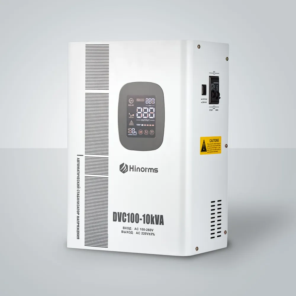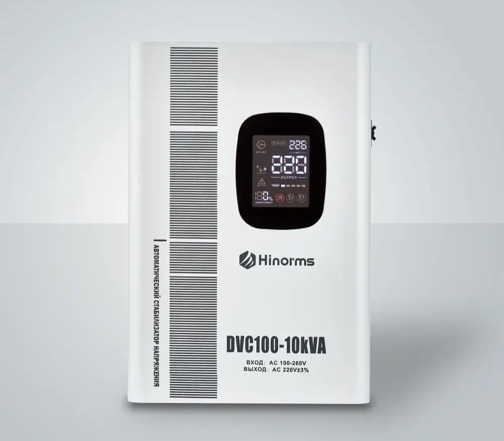 Электромеханические стабилизаторы напряжения Hinorms - это сервоприводной регулятор напряжения, способный работать при самом низком напряжении, что для данного типа большая редкость. Диапазон работы устройства от 100 до 260 Вольт при текущей погрешности выходного напряжения не более 3% - отличное решение для подключения в проблемных сетях частных домовладений и предприятий, а также требовательного оборудования и линий освещения без эффекта "моргания ламп". Принцип стабилизации: Электромеханический Тип напряжения: Однофазный Максимальная мощность (ВА): 10000 Рабочий диапазон входных напряжений (В): 100-260 Рабочий диапазон выходных напряжений (В): 90270 Отклонение выходных напряжений: ±3% Номинальная частота переменного тока (Гц): 50/60 КПД при полной нагрузке (%): 98 Режим работы: Непрерывный Режим "БАЙПАС": Есть Способ установки: Напольный / Настенный Задержка включения: 200 секунд / 6 секунд Защита от перегрузки по току: Автоматический выключатель Индикация параметров работы: LED-дисплей (многофункциональный) Температура эксплуатации (°С): -5...+40 Температура хранения (°С): -40...+45 Относительная влажность: Не более 90% Подключение к сети: Клеммная колодка Степень защиты (IP): IP20 Габаритные размеры нетто (мм): 465x238x332 Вес нетто (кг): 24 Цифровой LED дисплей показывает входное и выходное напряжение, перенапряжение/пониженное напряжение, перегрузку, задержку, температуру. Защита от повышенного напряжения, от пониженного напряжения, перегрузки, высокой температуры и короткого замыкания. Стабилизатор отличается высокой точностью выходного напряжения и может обеспечить высококачественное питание для любой нагрузки. Широко используется в промышленном производстве, научных исследованиях, здравоохранении, бытовой технике, где наблюдаются значительные колебания сетевого напряжения или в регионах с большими сезонными колебаниями сетевого напряжения.