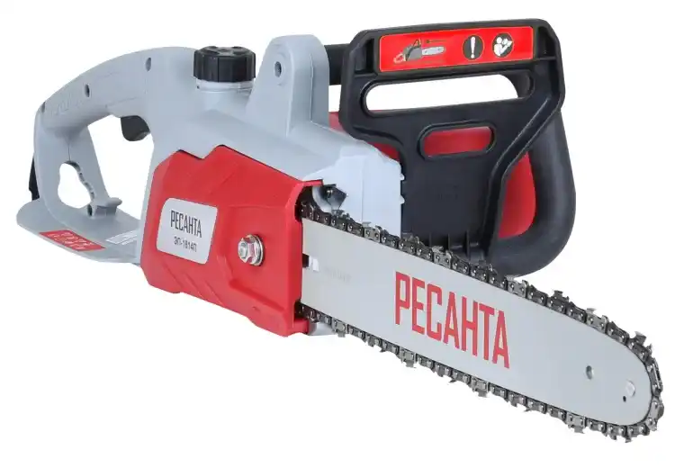 Электропила Ресанта ЭП-1814П предназначена для бытового использования: распиловка бревен, валка садовых деревьев, обрезка сучьев. Благодаря обрезиненной рукоятке держать такой агрегат в руках удобно и комфортно. Привод цепи осуществляется за счет электродвигателя, который работает от сети переменного тока 220В. Преимущества: - Надежное удержание. Удобная задняя рукоятка небольшого размера с пусковым курком жестко сидит в руке, что способствует надежному удержанию электропилы. - Безопасность. Автоматический тормоз цепи в виде щитка обеспНоминальная мощность, Вт 1800 Напряжение сети, В/Гц 220-230 / 50 Скорость пиления, м/сек 13,6 Уровень шума, Дб 64 Длина шины, мм 355 Тормоз цепи Да Быстрая затяжка цепи Нет Автоматическая смазка цепи Да Гарантия, мес. 12 Вес, кг 4.4 кг Габариты упаковки мм 440 х 220 х 210. Преимущества: - Надежное удержание. Удобная задняя рукоятка небольшого размера с пусковым курком жестко сидит в руке, что способствует надежному удержанию электропилы. - Безопасность. Автоматический тормоз цепи в виде щитка обеспечивает безопасность работы с электропилой, в первую очередь, защиту ваших рук. - Комфортное использование. В основании рукоятки предусмотрен специальный фиксатор для предотвращения отсоединения штекера от розетки. - Удобство обслуживания. Заменить щетки электродвигателя можно быстро и просто за счет их удобного расположения. Достаточно открутить крышку щеткодержателя. Отличительными особенностями электропилы Ресанта являются простота и удобство в работе, ведь она не требует заправки топливом и работает от сети 220В. Также стоит отметить низкий уровень шума, создаваемый при работе, а также полное отсутствие выхлопных газов. Это означает, что вы можете использовать пилу не только на улице, но и в помещении при ремонтных и строительных работах. Вы можете легко регулировать натяжение цепи с помощью винта, расположенного на корпусе справа. К характеристикам, обеспечивающим комфортное пользование инструментом, также можно отнести автоматическую смазку цепи. Чтобы вы смогли определить уровень смазки для цепи, в корпусе есть смотровое окошко с делениями. Единственная особенность - это недостаточная мобильность, ведь пользоваться инструментом можно только в непосредственной близости от розетки переменного тока 220В. Этот легко исправить, используя переноску (с кабелем подходящего сечения!) или бензогенератор Ресанта.