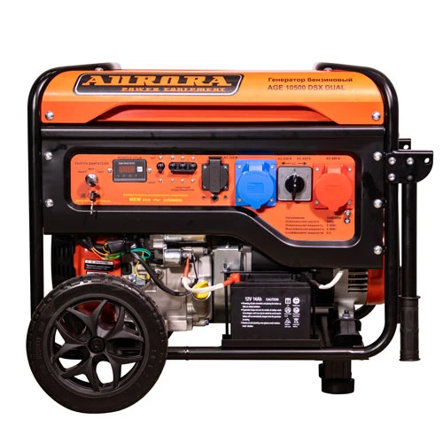 Генераторы предназначены для работы в загородных домах, в гаражах, на стройке, для обеспечения электричеством ремонтных бригад, а также решения других задач, требующих автономного энергоснабжения. Одноцилиндровый 4-х тактный бензиновый двигатель с верхним расположением клапанов, который установлен на генераторе, является аналогом двигателя HONDA. Поршни мотора усилены стальными гильзами, а значит, устройство прослужит своему хозяину много лет. Двигатели генераторов Aurora долговечны, обладают низким расходом масла на угар, экономят топливо и работают относительно тихо. Новая усиленная рама генератора надёжно фиксирует все элементы конструкции, а кожух бензобака обеспечивает его дополнительную защиту. Стоит обратить особое внимание на наличие на всех генераторах Aurora блока NEW AVR (Automatic Voltage Regulator), который предназначен для стабилизации выходного напряжения при изменении оборотов двигателя. Данное устройство гарантирует стабильную работу подключенного к генератору оборудования. Ещё одним преимуществом генераторов Аврора перед конкурентами является медная обмотка ротора и статора устройства. Медь по сравнению с алюминием обладает меньшим удельным сопротивлением и лучшими показателями электропроводности. Это значит, что во время работы генератор с медными обмотками будет греться гораздо меньше конкурентов с алюминиевыми обмотками. В следствие меньшего нагрева меди повышается надежность изоляции и стойкость к неблагоприятным условиям окружающей среды: высокой температуре, влажности или запылённости. Так же стоит отметить значительно лучшие прочностные характеристики меди и её стойкость к окислению. Особенности: возможность подключения одно и трёхфазных потребителей (230/400В) равная мощность для работы одно и трёхфазных потребителей защита от перекоса фаз система электропуска (ручной+электростарт) медные обмотки альтернатора дисплей индикации рабочих параметров (напряжение в сети/частота тока/время работы) три розетки для подключения потребителей (16/32A~230В//16А~400В) тумблер выбора рабочего напряжения 230 или 400В автоматы и предохранители для защиты генератора от перегрузок синхронный генератор рассчитан на повышенную пусковую мощность и имеет высокий КПД двигатель с нижним расположением распредвала не требует добавления масла в бензин лёгкий запуск при низких температурах (при условии верного подбора масла) высокий КПД мотора большой бак позволяет долгое время работать без дозаправки система стабилизации напряжения на выходе (NEW AVR) защита от перегрузок предохраняет от выхода из строя наиболее дорогие узлы и детали усиленная рама с дополнительными кожухами для защиты бензобака моторесурс более 1000 часов Технические характеристики: Максимальная мощность 8.5, кВт Номинальная мощность 8.0, кВт Напряжение 230/400, В Частота 50, Гц Модель двигателя 192F Рабочий объем двигателя 460, см3 Охлаждение воздушное Объем топливного бака 25, л Расход топлива 5, л/час Пусковое устройство электростартер Рекомендуемое топливо бензин Аи92 Вес нетто (сухой) 89, кг Производитель Aurora Вес брутто 98, кг Габариты упаковки 570х600х690, мм Выбирая генератор, следует учитывать запас мощности, необходимый для корректной работы устройства: Суммарная мощность потребителей электричества должна быть меньше мощности генератора. Для резистивных приборов (прибор