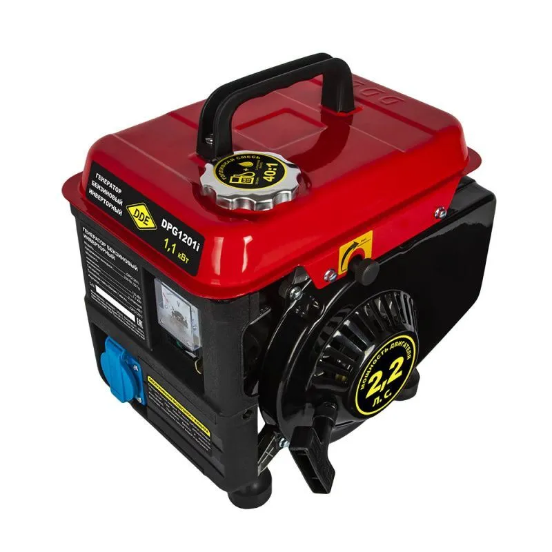 Бензиновый инверторный генератор DPG1201i производителя DDE - это надежное и компактное устройство, предназначенное для обеспечения электроэнергией в условиях отсутствия централизованного электроснабжения. Он идеально подходит для использования на даче, в походе, на рыбалке или на строительной площадке. Если вам необходимо надежное и компактное устройство для обеспечения электроэнергией в условиях отсутствия централизованного электроснабжения, то бензиновый инверторный генератор DDE DPG1201i - идеальный выбор. Он обеспечит стабильное электропитание и позволит вам использовать различные электроприборы в любых условиях. Характеристики Двигатель: DDE Модель двигателя: YK1E45F-2 Тип двигателя: бензиновый, 2-х тактный Объем двигателя, куб.см.: 69 Кол-во цилиндров двигателя: 1 Мощность двигателя, л.с: 2 Мощность двигателя, Вт.: 1480 Количество фаз: Однофазный выход, 1 роз. 16А, доп. 12В Запуск: ручной Запуск электростартера: ручной стартер Тип масла: 2-х тактное полусинтетическое Расход топлива, л/час: при 75% - 0,55 Время непрерывной работы, ч: 4,5 Емкость топливного бака, л.: 2,2 Рекомендуемое топливо: АИ-92 Вращение двигателя, об./мин.: 3600 Охлаждение: воздушное Уровень шума, Дб.: 70 Мощность электроустановки на фазу max, Вт: 1100 Мощность электроустановки на фазу nom, Вт.: 1000 Коэффициент мощности, cos : 1,0 Исполнение: открытый Габаритные размеры и вес Длина, мм: 330 Ширина, мм: 270 Общая высота, мм: 350 Габаритные размеры, мм: 330х270х350 Вес, кг.: 12 Комплектация: инструкция на русском языке, гарантийный талон, упаковка Генератор ДДЕ DPG1201i оснащен 2-таныктм бензиновым двигателем мощностью 2 л.с., который обеспечивает надежную и стабильную работу устройства. Благодаря инверторной технологии, генератор обеспечивает стабильное напряжение и чистый синусоидальный ток, что позволяет использовать его для питания даже самых чувствительных электроприборов. Особенностью генератора является его компактный размер и небольшой вес. Это делает его удобным в транспортировке и хранении. Кроме того, генератор оснащен колесами и ручкой, что облегчает перемещение устройства на неровной поверхности. Генератор DDE DPG1201i имеет высокую мощность, которая позволяет использовать его для питания различных электроприборов. Он оснащен несколькими розетками разного типа, что позволяет подключать к нему несколько устройств одновременно. Благодаря низкому уровню шума и небольшому расходу топлива, генератор DDE DPG1201i является экономичным и эффективным решением для обеспечения электроэнергией в любых условиях. Он обладает высокой надежностью и долговечностью, что позволяет использовать его в течение длительного времени без перерывов.