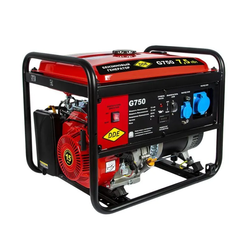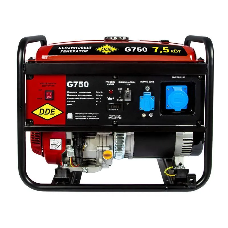 Бензиновый генератор ДДЕ G750 - это надежное и мощное устройство, которое обеспечит независимый источник энергии в любых условиях. Благодаря своей компактности и портативности, он идеально подходит для использования на даче, в походе, на строительной площадке или в экстренных ситуациях. Основным преимуществом генератора является его высокая мощность. С максимальной мощностью 7500 Вт и номинальной мощностью 7000 Вт, он способен обеспечить питанием различные электроприборы, включая бытовую технику, электроинструменты и осветительные приборы. Если вам нужен надежный и мощный источник энергии, который сможет обеспечить питанием различные электроприборы в любых условиях, то бензиновый генератор DDE G750 - ваш выбор. Портативность, высокая мощность и простота использования делают его идеальным решением для дачи, похода или экстренных ситуаций. Характеристики Двигатель DDE Модель двигателя SC192F Тип двигателя: бензиновый, 4-х тактный Электродвигатель синхронный Объем двигателя, куб.см. 459 Кол-во цилиндров двигателя 1 Мощность двигателя, л.с. 16 Мощность двигателя, Вт. 10700 Диапазон рабочего напряжения, В 210-230/50 Количество фаз: однофазный Запуск: ручной Запуск электростартера ручной стартер Тип масла 4-х тактное 10W-40 Расход топлива, л/час при 75% - 2,78 Время непрерывной работы, ч 9 Емкость топливного бака, л. 25 Рекомендуемое топливо АИ-92 Емкость картера двигателя, л. 1,1 Датчик уровня масла датчик уровня Вращение двигателя, об./мин. 3600 Охлаждение воздушное Класс защиты IP23 Уровень шума, Дб. 97 Датчик уровня топлива есть Тип оборудования синхронный Высоковольтная защита, В есть Мощность электроустановки на фазу max, Вт 7500 Мощность электроустановки на фазу nom, Вт. 7000 Кол-во розеток 380/220/12 В -/2/- Розетки, шт.-В/А 1х220/16А, 1х220/32А Защита от перегрева нет Объем масляной емкости, л. 1,1 Коэффициент мощности, cos 1.0 Исполнение открытый Общие характеристики Длина, мм 695 Ширина, мм 540 Общая высота, мм 590 Габаритные размеры, мм 695х540х590 Габариты упаковки, cм 70х60х60 Упаковка картонная коробка Вес, кг. 85 Комплектация* генератор, свечной ключ, вилка 32А, инструкция на русском языке, гарантийный талон, упаковка Генератор DDE G750 оснащен надежным двигателем с воздушным охлаждением, который обеспечивает стабильную работу устройства. Благодаря использованию бензина в качестве топлива, генератор обладает высокой эффективностью и экономичностью. Емкость топливного бака составляет 25 литра, что позволяет генератору работать до 8 часов без перерыва. Управление генератором очень простое и удобное. На панели управления расположены все необходимые элементы, включая кнопку пуска, регулятор напряжения и индикаторы работы. Благодаря этому, даже новичок сможет легко освоить работу с генератором. Безопасность использования генератора DDE G750 также на высоком уровне. Он оснащен системой автоматического отключения при перегрузке, что предотвращает повреждение устройства и обеспечивает безопасность пользователя. Кроме того, генератор имеет защиту от короткого замыкания и низкого уровня масла. Генератор имеет компактные размеры и небольшой вес, что обеспечивает его легкость в транспортировке и хранении. Комплектация генератора включает в себя ручку, что позволяет удобно перемещать его по территории. Корпус генератора выполнен из прочного материала, что обеспечивает его долговечность и надежность.
