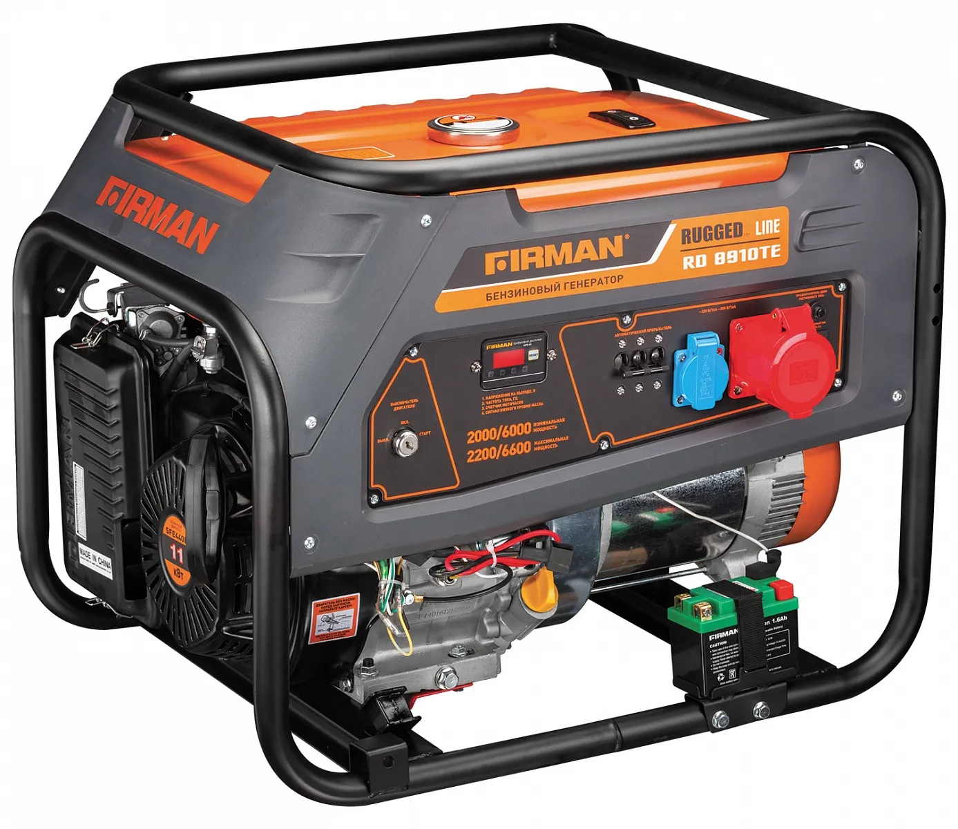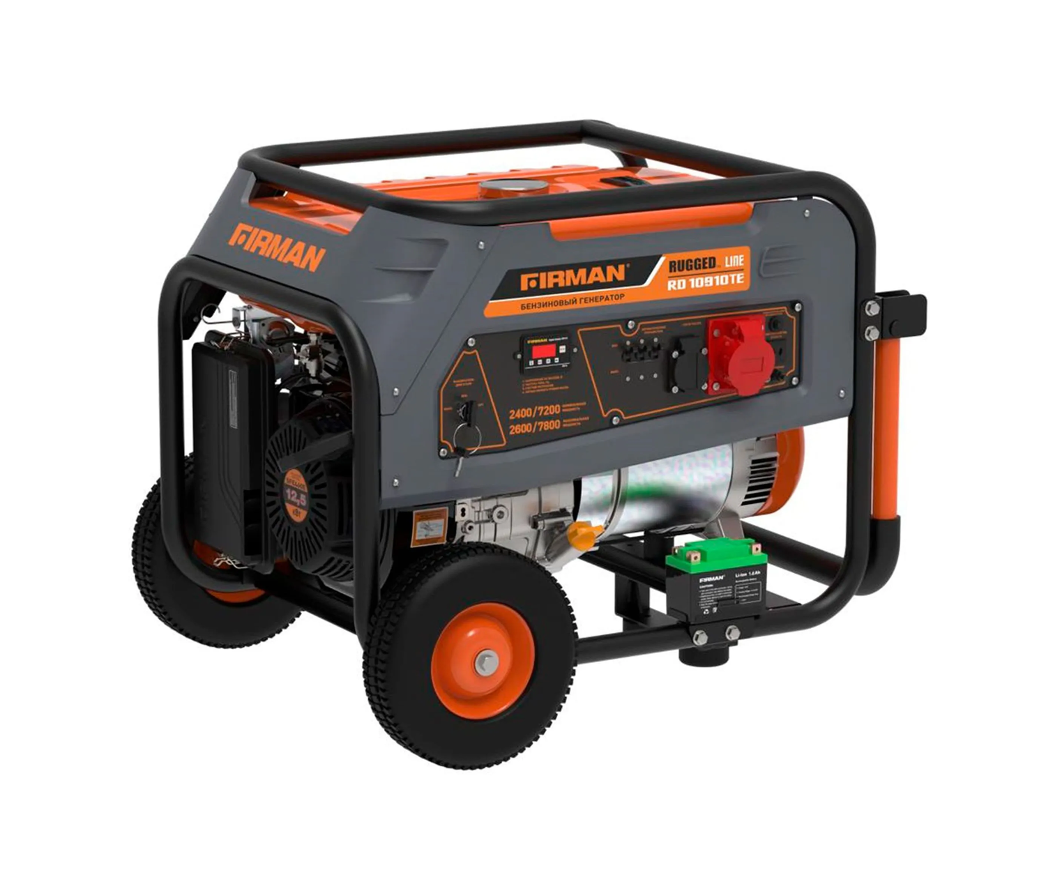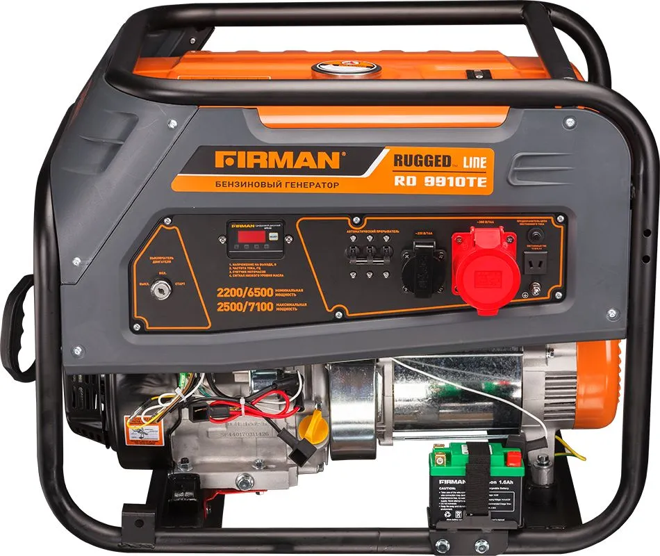 Модель RD10910TE оснащена электрическим стартером и поставляется комплектом с аккумуляторной батареи для удобного запуска. Благодаря емкому топливному баку, генератор способен работать на одной заправке до 6 часов при номинальной нагрузке. Для удобства перемещения, все генераторы данной серии имеют возможность установки транспортировочного комплекта, за счет чего без труда можно переносить генератор в рабочей зоне. С бензиновым трёхфазным генератором Firman RD10910TE вы получаете надежное электроснабжение и гарантированную эффективность в различных ситуациях. Напряжение, В : 220/380 Частота, Гц : 50 MAX мощность, Вт : 7800 Емкость системы смазки, мл : 1100 Тип стартера : Комбинированный (Эл./Ручн.) Объем двигателя, см3 : 459 Обороты, об/мин : 3000 Уровень шума, дБ : 72 Мощность, Вт : 7200 Объем бака, л : 25 Расход топлива, л/час : 3,2 Выход переменного тока : есть Габариты Д*Ш*В, мм : 810х560х575 Вес нетто, кг : 96 Для тех, кто ищет надежное и эффективное электроснабжение, мы представляем бензиновый трёхфазный генератор Firman RD10910TE с максимальной мощностью 7,8 кВт. Этот генератор оборудован бензиновым одноцилиндровым двигателем объемом 459 кубических сантиметров, который работает по принципу четырехтактного цикла и имеет систему воздушного охлаждения. Интегрированный мультиметр 4 в 1 на моделях RD гарантирует оператору полный контроль. Он отображает текущее напряжение, частоту тока, счетчик моточасов и уровень давления масла, обеспечивая надежный мониторинг работы генератора. Этот генератор идеально подходит для обеспечения электроэнергией небольших строительных площадок, небольших бизнес-объектов, выездной торговли и аварийного электроснабжения коттеджей. Комплект поставки: инструкция, гарантийный талон, свечной ключ, ключ зажигания 2 шт, вилка 2 шт, переходник 12В, аккумуляторная батарея Li-Ion