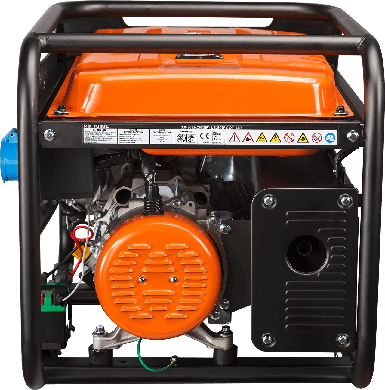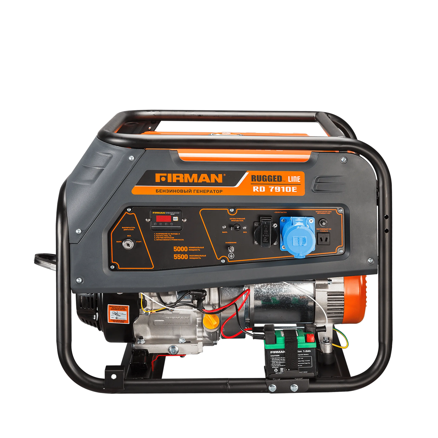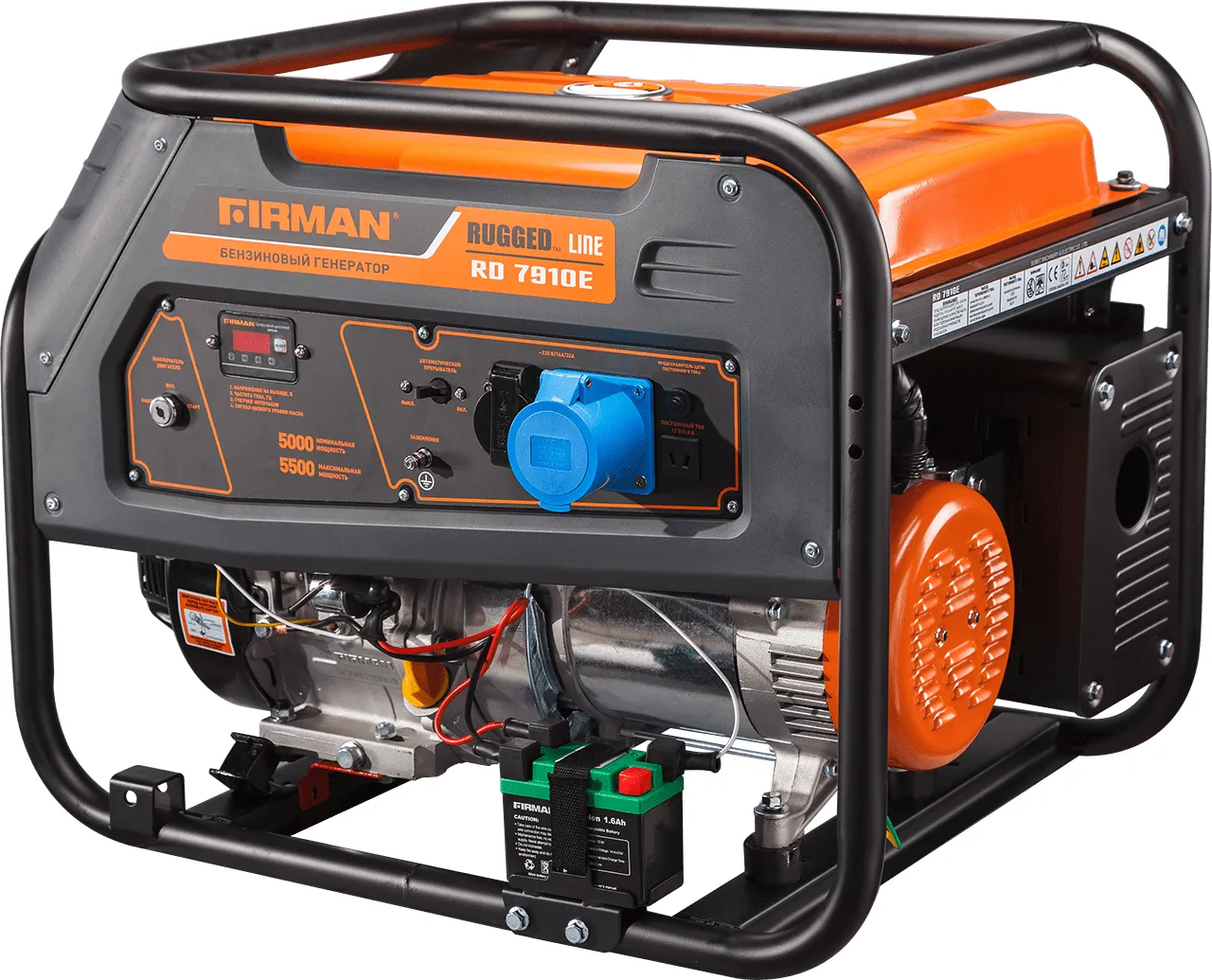 Электростанция бензиновая FIRMAN RD7910E оснащена удобной системой запуска, которая включает в себя как ручной стартер, так и электростартер. Объем топливного бака составляет 25 литров, позволяя продолжительное время использования. Благодаря открытому исполнению на прочной раме, эта электростанция становится надежным помощником в различных сценариях - от кемпинга до аварийного электроснабжения. Основные характеристики Напряжение/частота (В/Гц): 230/50 Номинальная мощность генератора (кВт): 5 Максимальная мощность генератора (кВт): 5.5 Расход топлива (л/час): 2.5 Двигатель Двигатель, общее описание: Бензиновый, четырехтактный с OHV, одноцилиндровый Тип двигателя: бензиновый Производитель двигателя: SUMEC MACHINERY&ELECTRIC CO.,LTD Модель двигателя: Firman SPE 390 Объем двигателя , см.куб.: 389 Мощность двигателя (л.с.): 13 Число цилиндров: 1 Число оборотов двигателя (об/мин): 3000 Система регулировки оборотов двигателя: механическая Система охлаждения: воздушная Емкость масленого картера (л): 1.1 Тип масла: SAE10W30, SAE10W40 Тип топлива: Бензин Альтернатор - материал обмоток: медь 100% Дополнительная информация Система пуска: ручной стартер, электростартер Объем топливного бака (л): 25 Исполнение: открытое на раме Дополнительные опции: АКБ Приборы контроля: вольтметр Сила тока на фазу номинальная (А): 23 Фаз: 1 Выводов переменного тока (шт): 2 Выход 12V (Ампер): 8.3 Коэффициент мощности (Cos f): 1 Уровень шума (дБ(А)): 68 Транспортная информация Сухой вес (кг): 90 Габариты без упаковки, Д*Ш*В (мм): 690*525*560 Объем брутто (м3): 0.235 Упаковка: картон Комплект поставки: инструкция , гарантийный талон , свечной ключ , вилка 2 шт, переходник 12В , резиновые ножки 8шт , АКБ Важными особенностями FIRMAN RD7910E являются наличие дополнительных опций, включая установленный аккумулятор (АКБ) для удобства. Уровень шума во время работы составляет 68 децибел, обеспечивая комфортное использование. Дополнительные приборы контроля, такие как вольтметр, позволяют вам следить за электрическими параметрами. Она оборудована двумя выходами переменного тока и дополнительным выходом 12 В для разнообразных устройств. Мощный бензиновый двигатель Firman SPE 390 с объемом 389 кубических сантиметров и мощностью 13 лошадиных сил гарантирует надежную работу. Двигатель охлаждается воздушной системой и имеет механическую систему регулировки оборотов.