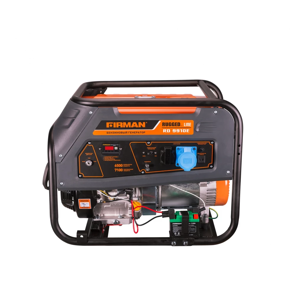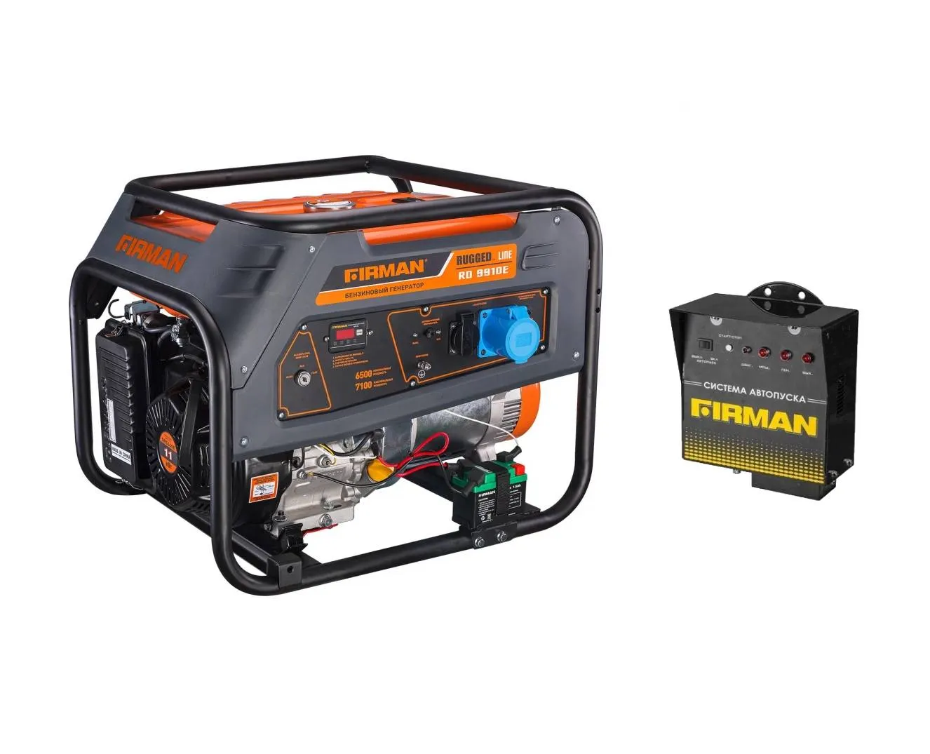 Электростанция FIRMAN RD9910E+ATS с номинальной мощностью 6,5КВт. Предназначена для производства электроэнергии на строительных, жилых, промышленных и других объектах. Двигатель: 1-цилиндровый бензиновый SPF440E, мощностью - 15л.с. Оборудован топливным баком емкостью 25 литров. Характеризуется пониженным расходом топлива. Напряжение, В : 220 Номинальная мощность, Вт : 6500 MAX мощность, Вт : 7100 Емкость системы смазки, мл : 1100 Объем топливного бака, л : 25 Тип стартера : электро Мощность двигателя, л/с : 15 Объем двигателя, см3 : 439 Марка двигателя : SFE 440 E Степень (класс) защиты : IP23 Производитель : Firman Вес нетто, кг : 97 Конструкция: узлы и механизмы защищены от повреждений стальным каркасом. Прочная рама с демпферной системой обеспечивает повышенную устойчивость. В удобном доступе расположены две розетки 220В. Преимущества: для автоматического запуска при перебоях основного электроснабжения предусмотрен блок АВР. Управление производится функциональным контроллером. Комплект поставки: инструкция, гарантийный талон, свечной ключ, ключ зажигания 2 шт, вилка 2 шт, переходник 12В, аккумуляторная батарея Li-Ion инструкция, гарантийный талон, свечной ключ, ключ зажигания 2 шт, вилка 2 шт, переходник 12В, аккумуляторная батарея Li-Ion, блок A