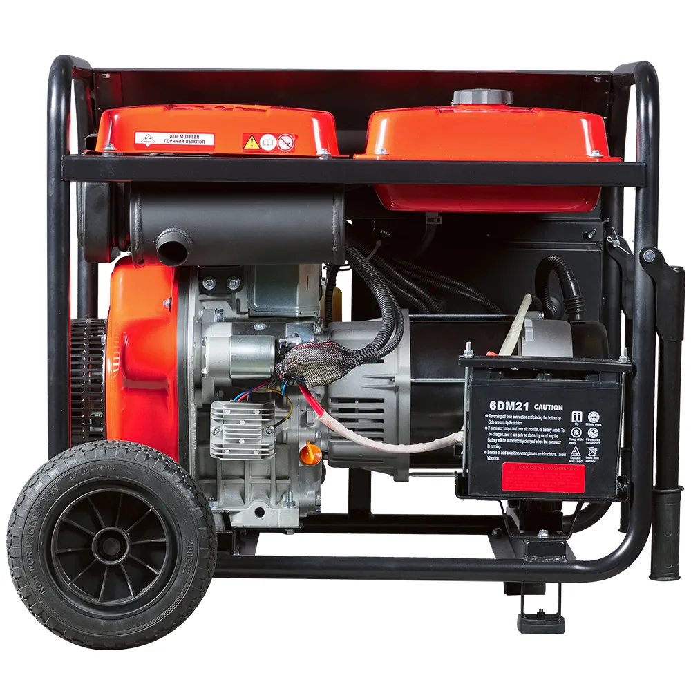 Дизельный генератор FUBAG DS 7000 DA ES предназначен для питания нескольких однофазных потребителей суммарной мощностью 1,7 кВт или трехфазных до 5 кВт. Мотор запускается как с ручного, так и с электрического стартера. Есть разъем для установки блока автоматики ATS, а также автоматический регулятор напряжения AVR. Особенности: Вместительный топливный бак емкостью 12,5 л. Указатель уровня топлива. Все розетки с пылезащитными колпачками. Мощность двигателя 7,75 кВт. Медная обмотка альтернатора. Цифровой дисплей. Max мощность, кВт 7 Мощность номинальная при 220 В, кВт 1.7 Мощность номинальная при 380 В, кВт 5 Мощность максимальная при 220 В, кВт 2.3 Мощность максимальная при 380 В, кВт 7 Напряжение, В 220/380 Число оборотов, об/мин 3000 Частота, Гц 50 Max входное напряжение, В 380 Тип охлаждения воздушное Двигатель Тип двигателя дизельный Мощность, л.с. 7 Объем двигателя, см³ 474 Мощность, кВт 5.15 Двигатель 1-цилиндровый, 4-х тактный с воздушным охлаждением Тактность двигателя 4-х тактный Прочее Степень защиты IP23 Габариты и вес Габариты без упаковки, мм 770х475х590 Вес нетто, кг 106 Вес упакованного товара, кг 114.8 Комплектация Дизельный генератор FUBAG DS 7000 DA ES Вилка 230В/16А - 2 шт. Вилка 400В/16А Воронка для масла Ключ рожковый - 2 шт. Провода для подключения к клеммам 12В Опоры - 4 шт. Комплект колес Комплект ручек Инструкция Упаковка Генератор позволит запитать технику на спортивной площадке, в загородном доме или походной палатке. Вы можете установить его для торговой точки, а также в своей домашней мастерской или гараже. Даже если у вас слабая электросеть, то система AVR обеспечит стабильное напряжение. Это предотвратит перегрузку мотора самого генератора и убережет подключенную к нему технику от внезапного отключения. На панели управления находится 3 розетки: две на 230 В и одна на 400 В для подключения трехфазных потребителей. Есть клеммы 12 В, которые применяются для экстренной зарядки аккумуляторной батареи. В генераторе FUBAG DS 7000 DA ES используется профессиональный мотор, который выполнен с верхним расположением клапанов (OHV). Такая конструкция обеспечивает полное сгорание топлива и повышенный КПД. Синхронный альтернатор оснащен медной обмоткой, которая долговечнее алюминиевой и не так сильно греется во время работы. Дизельный генератор прост в освоении. Основная информация крупными цифрами выводится на дисплей. С экрана вы можете отслеживать как рабочие параметры, так и проверять счетчик моточасов. Весит генератор достаточно много 106 кг. Однако за счет больших транспортировочных колес его удобно перемещать по рабочей площадке.