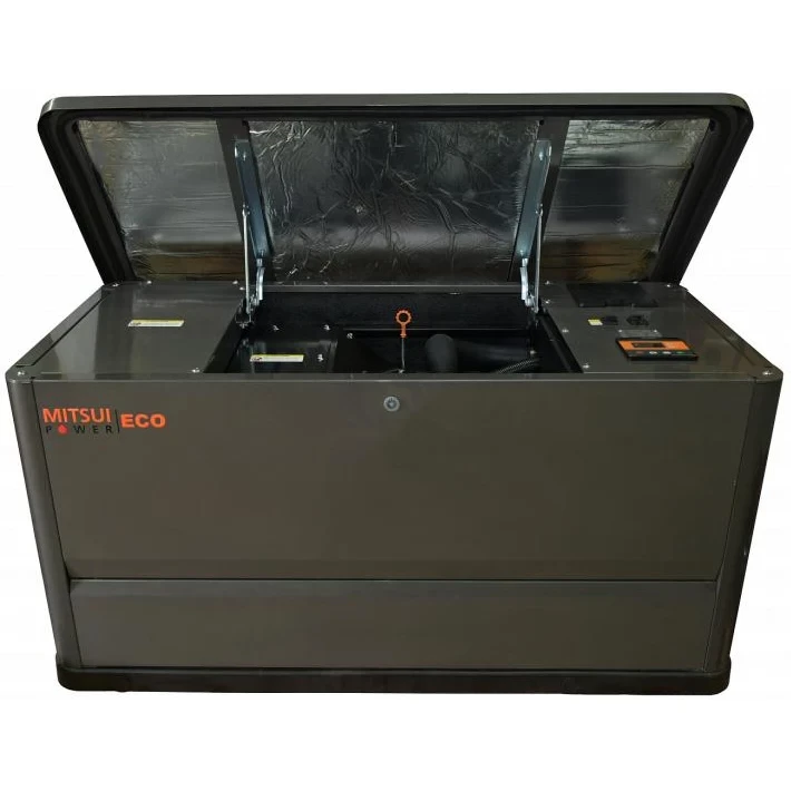 Газовый генератор Mitsui Power Eco GM 16000 собран на двухцилиндровом двигателе Rato и альтернаторе синхронного типа. Для лучшей проводимости обмотка альтернатора выполнена из меди. Газогенератор MPE GM 16000 применяют в качестве резервного источника питания загородного дома, дачи, небольшой мастерской или склада. Генератор может работать на магистральном газе или жидком пропане. Основные характеристики: Бренд: Mitsui Номинальная мощность, кВт: 17 Максимальная мощность, кВт: 18.7 Напряжение, В: 230 Тип запуска: Ручной / электростартер Регулятор напряжения: AVR Исполнение: В кожухе Вес: 240 кг Габариты: 1425 × 690 × 725 мм Двигатель: Производитель двигателя: Mitsui Модель двигателя: R999D Число тактов: 4 Тип топлива: Пропан-бутан / Метан Объем двигателя, л: 0.999 Количество цилиндров: 2 Расположение цилиндров: рядное Частота вращения вала, об/мин: 3000 Уровень шума, дБ: 65 Регулятор оборотов: Электронный Система зажигания: Твердотельное-магнето Тип двигателя: OHV Commercial V-Twin Альтернатор: Тип альтернатора: Щеточный, Синхронный Частота тока, Гц: 50 Номинальный коэффициент мощности: 1 Класс изоляции: H Материал обмоток альтернатора: Медь Система охлаждения: Тип системы охлаждения: Воздушная Масляная система: Объем системы смазки, л: 2.5 Тип масла: 5W-30 Синтетическое Топливная система: Расход LPG при 50% нагрузке, м3/ч: 1.85 Расход LPG при 100% нагрузке, м3/ч: 3.3 Расход NG при 50% нагрузке, м3/ч: 4.6 Расход NG при 100% нагрузке, м3/ч: 7.1 Генераторная установка оснащена панелью, на которой отображаются показания вольтметра, количество отработанных моточасов и прочее. Индикация показывает заряд АКБ, уровень масла и неисправность в оборудовании. Электростанция имеет защиту от перегрева, перенапряжения и прочего. ГУ оснащена шумозащитным кожухом с откидной крышкой. Корпус покрыт антикоррозийной краской. Внутренняя часть обклеена специальным изоляционным и невоспламеняемым материалом. Опции: АВР 63 Gas IP 54, АВР 63 Gas IP 65 PRO, Подогрев масляного фильтра GM13-16, Аккумулятор 45Ah/410A, Комплект ТО GM13-16