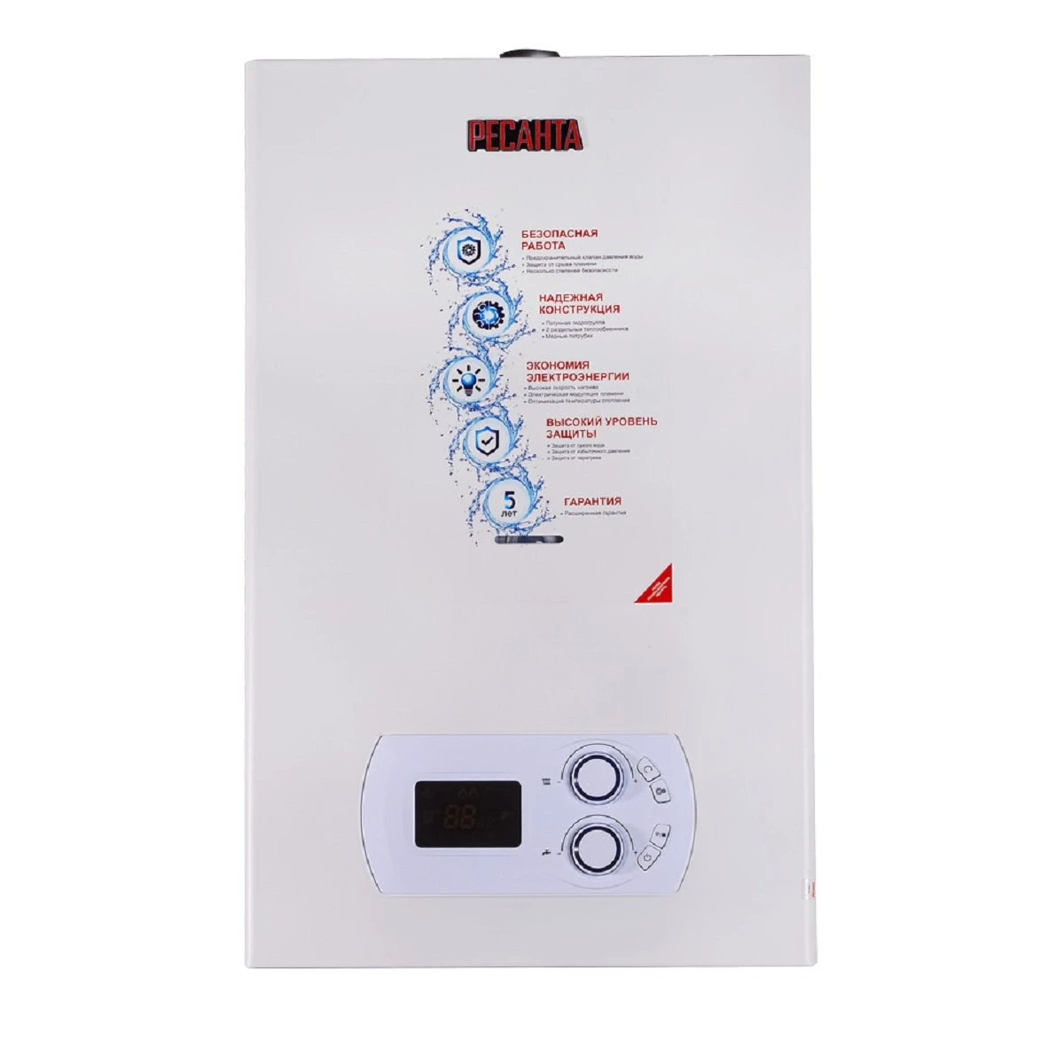 Модель предназначена для работы на природном газе с давлением 2000 Па. Предусмотрены присоединительные размеры: ¾" для газовой магистрали, ¾" для системы отопления и ½" для контура водоснабжения. Расход природного газа достигает 2,4 м³/ч. Котел оснащен системой принудительного дымоудаления и подключается к коаксиальному дымоходу диаметром 60/100 мм. Котел предназначен для автономного отопления квартир, частных домов и небольших коммерческих помещений или хозяйственных построек. Возможность подключения к бойлеру косвенного нагрева позволяет организовать стабильное снабжение горячей водой нескольких точек водоразбора. Если подключение бойлера не требуется, то устанавливается перемычка. Тип газового котла: Одноконтурный с трехкодовым клапаном Материал первичного теплообменника: Медь Тип дымоудаления: Принудительный вентилятором (закрытая камера сгорания) Тип газа: Природный газ Давление газа:2000 Па Тепловая мощность в режиме отопление: 9.6 24 кВт Тепловая мощность в режиме ГВС: 9.6 24 кВт КПД: 90 % Максимальный расход природного газа в час: 2.4 м³ Давление в воздушной полости расширительного бака: 1 бар Объем расширительного бака: 5 л Давление в системе отопления: 0.5 3 бар Диапазон регулировки температуры теплоносителя: 30 80 °C Диапазон регулировки температуры бытовой горячей воды: 30 60 °C Присоединительный размер газовой магистрали: 3/4 дюйма Патрубки подключения подающей и обратной линий системы отопления: 3/4 дюйма Патрубки подключения подающей холодной и обратной горячей воды: 1/2 дюйма Напряжение питающей сети: 220 230 В Частота сети: 50 Гц Мощность: 135 Вт Присоединительный размер коаксиального дымохода 60 мм, 100 мм Класс защиты: IPx4 Комплектация Паспорт изделия, Анкерные болты - 2 шт. Габариты: 700х430х245 Вес: 28.3 кг Преимущества: Компактные размеры - не возникает сложностей с установкой легко найти подходящее место Может использоваться как для радиаторов отопления, так и системы теплого пола Защита от замерзания зимой при существенном снижении теплоносителя котел включается сам Можно подключить систему для дистанционного управления