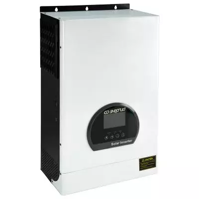 Гибридный солнечный инвертор Энергия Вольт 5000 PRO для систем резервного и автономного электроснабжения мощностью 3 кВт и коэффициентом мощности 1.0 представляет собой многофункциональное устройство, которое сочетает в себе солнечный контроллер заряда, инвертор и зарядное устройство (ЗУ) для зарядки АКБ от сети 220 В. Гибридный инвертор Энергия Вольт 5000 PRO накапливает энергию от солнечных модулей, сети или генератора в аккумуляторные батареи, имеет функции подмешивания и отдачи энергии в сеть. Также отличительной особенностью инвертора является возможность работы без АКБ. Артикул L0201-0168 Номинальное выходное напряжение, В 230 Номинальная мощность, Вт 5200 Напряжение АКБ, В 48 Максимальный зарядный ток солнце+сеть, А 100 Максимальный зарядный ток от сети, А 80 Контроллер MPPT 100A Напряжение MPPT, В DC 150-430 Максимальное напряжение холостого хода панелей, В DC 450 Максимальная мощность солнечных панелей, Вт 6000 Параллельная работа Опционально WiFi Опционально Порты подключения USB, RS-485, сухие контакты BMS подключение есть Отдача в сеть есть Подмешивание из сети есть Вес НЕТТО, кг13 Габаритные размеры мм 468 x 330 x 119 Преимущества: Чистая синусоида на выходе инвертора. Встроенный контроллер солнечного заряда по технологии МРРТ. Функция подмешивания. Функция отдачи в сеть. Возможность работы без АКБ. Несколько режимов работы. Автоматический перезапуск при восстановлении питания. Большой жидкокристаллический дисплей. Возможности для соединения с компьютером. Настройка нижнего и верхнего порога зарядки аккумуляторов. Настраиваемый диапазон входного напряжения. Настраиваемый ток заряда аккумуляторов. 3-х ступенчатый режим заряда АКБ. Защита от перегрузки / перегрева / короткого замыкания. Эффективная конструкция зарядного устройства.