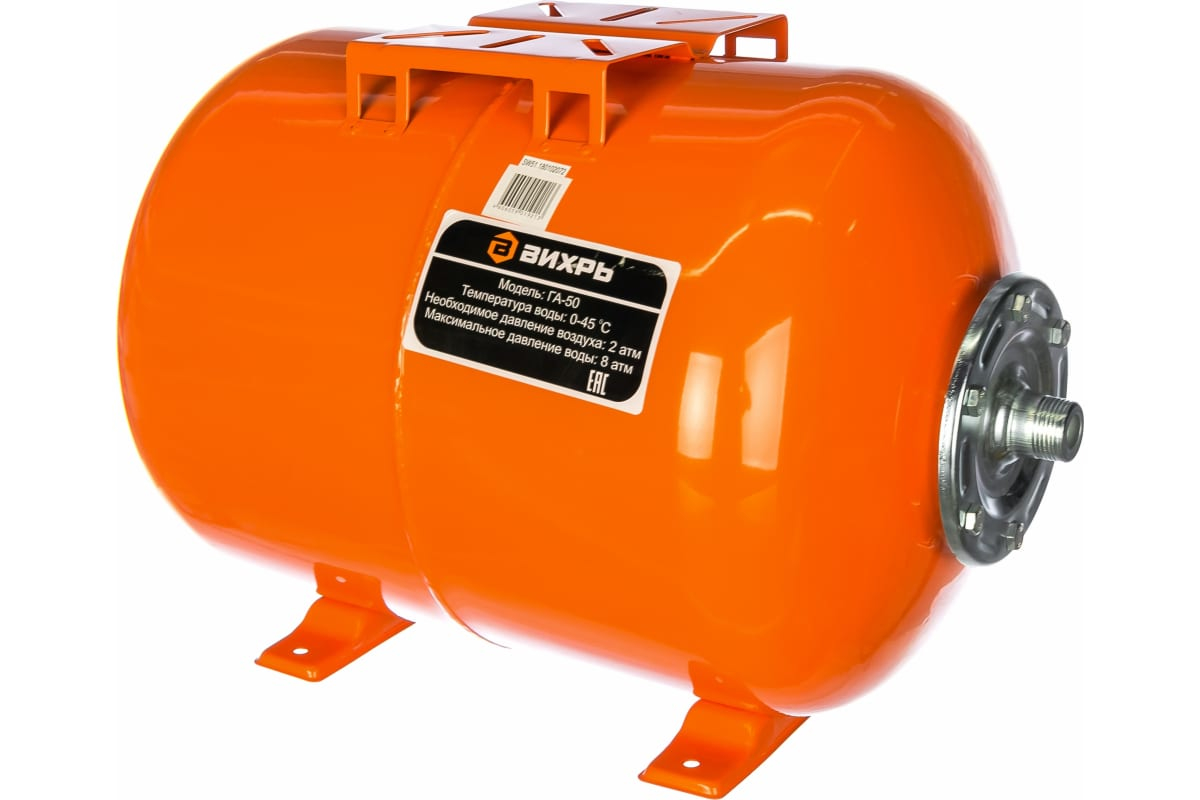 Гидроаккумулятор служит для аккумулирования воды под давлением и сглаживания гидроударов. Используется в системе водоснабжения совместно со скважинным или поверхностным насосом. Он состоит из стального резервуара со сменной мембраной из пищевой резины и имеет пневмоклапан для закачивания сжатого воздуха.В системах водоснабжения используются скважинные и поверхностные насосы. Гидроаккумулятор подбирается в зависимости от мощности и производительности насоса.Для поверхностных насосов: Баки емкостью 24 литра для насосов мощностью до 1 кВт, а мощностью свыше 1 кВт предпочтительны баки 50 литров.Для скважинных насосов: Баки емкостью 24 литра для насосов мощностью до 500 Вт, баки емкостью 50 литров для насосов до 1 кВт, баки емкостью 100 литров для насосов до 1,5 кВт. Модель ГА-50 Вес без упаковки, кг 6.72 Объем бака, л 50 Макс. температура воды, °C 45 Давление, бар 8 8 Гарантия, мес. 12 Страна бренда Россия Страна производства Китай Вес 7.56 кг Бренд Вихрь Габариты, см 56,7 x 36,5 x 38,5