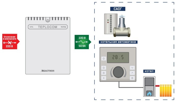 TEPLOCOM-50+ предназначен для бесперебойного электропитания котельной автоматики, систем типа САОГ (системы аварийного отключения газа) и другого оборудования 220 В мощностью до 50 ВА. Применение схемотехники On-line с двойным преобразованием энергии обеспечивает подключенное оборудование качественным стабильным питанием. В случае отключения электроэнергии источник питания мгновенно переходит на работу от аккумуляторной батареи защищая котельную автоматику от зависания, а системы САОГ от ложных срабатываний. Технические характеристики: Ручной байпас: Нет Защита:от перегрузки Отображение информации:светодиодная индикация Клеммы:шнур сетевой с вилкой, шнур сетевой с розеткой Рабочая температура, °C:-10...+40 Холодный старт:Да Горячая замена:Нет Ток заряда, не более, А:0.5 Входное (сетевое) напряжение, В:180...250 Полная мощность, ВА:50 Активная мощность, Вт:40 Выходное напряжение, В:220В+10%... 220В-15% Потребляемая мощность, ВА:5 Необходимое количество АКБ, шт.:1 Емкость подключаемых АКБ, Ач:7-26 Тип подключения АКБ:Внешняя АКБ, приобретается отдельно Вес (НЕТТО), кг:1 Габаритные размеры (ШxВxГ), мм:170х105х210 Автоматический переход на резервное питание от АКБ при пропадании сети. Пластиковый корпус рассчитан под установку АКБ 7 Ач. Возможность подключения внешней аккумуляторной батареи емкостью до 26 Ач. Защита АКБ от глубокого разряда, оптимальный заряд АКБ, защита от перегрузки, индикация режимов работы, настенная установка. Разработан с учетом специфики работы котельной автоматики.