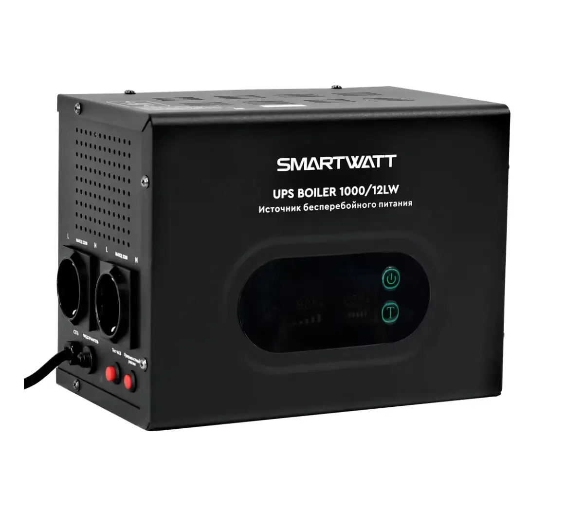 ИБП для котла отопления SMARTWATT UPS BOILER 1000/12LW обеспечивает непрерывное электропитание фазозависимых котлов отопления в случае отключения электричества или других проблем с сетью. Принцип работы: line-interactive с подключением внешних АКБ; Напряжение: Однофазный; Рабочий диапазон: 140 - 275 Вольт; Мощность: 1000 ВА; Питание: 12 Вольт (одна АКБ на 12V); Точность: 220 Вольт ± 10 %; Установка: Напольный / Настенный; Габариты: 300x205x165; Вес изделия: 7.50 кг; Технология интеллектуального заряда высоким током (до 15 А) позволяет быстро зарядить аккумуляторные батареи емкостью до 200 А*ч. ИБП с чистым синусом применим ко всем видам нагрузок, в том числе для устройств, оснащенных циркуляционными насосами. Модульная схема, управляемая процессором, обеспечивает точную производительность и защиту. Встроенный стабилизатор напряжения работает в режиме от сети и подходит для мест с нестабильным сетевым напряжением. ИБП обладает высокой нагрузочной способностью благодаря высокоэффективному трансформатору и специально разработанной электронной схеме. Трехступенчатый переключатель тока заряда позволяет подключать аккумуляторные батареи разной емкости в зависимости от требуемого времени резервного копирования. Дополнительные функции: Индикация правильной фазировки. Тест аккумуляторной батареи для определения фактического времени резервирования. Режим продления времени резерва (Прерывистый режим). Защита от скачков напряжения. Защита от глубокого разряда АКБ. Защита от перезаряда АКБ. Защита от короткого замыкания. Защита от перегрузки.