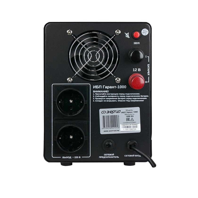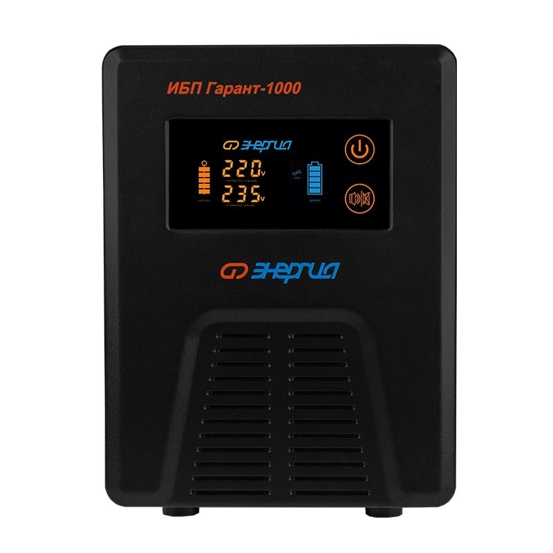 Инверторы «Энергия» серии ИБП Гарант заряжают аккумулятор в момент присутствия сети. При полном пропадании питания прибор находится в режиме преобразователя постоянного сигнала в переменный (инверторный режим). Он преобразует постоянное напряжение аккумуляторной батареи в переменное напряжение 220 Вольт, которое подается к потребителям. При появлении напряжения в сети происходит переключение прибора из инверторного режима в режим стабилизации. Он начинает работать как стабилизатор напряжения релейного типа с диапазоном входных напряжений 155-275 Вольт и с точностью 220±10%. Одновременно с этим происходит зарядка аккумуляторной батареи. В инверторном режиме прибор потребляет энергию подключенного к нему аккумулятора. Тип инвертора: Line-interactive Способ установки: Напольный Форма напряжения: Чистая синусоида Число фаз: Одна Максимальная мощность (ВА): 1000 Пик-фактор: 3:1 Наличие стабилизатора: Есть, автотрансформатор с релейными ключами Величина постоянного напряжения (В): 12 Количество 12 вольтовых аккумуляторов необходимых для работы: 1 Функция заряда аккумулятора: Есть Ток заряда аккумуляторов (А): От 10 до 15 Максимальная ёмкость подключаемых аккумуляторов (А/Ч): 200 Рабочий диапазон входного напряжения сети (В): 155-275 Выходное напряжение при питании от сети (В): 220 ±10% Выходное напряжение при питании от батарей (В): 220 ±1% Частота выходного напряжения (Гц): 50 Защита от перегрузки до 120% от мощности: 30 секунд работы Защита от перегрузки больше 120% от мощности: 2 секунды работы Защита от перегрузки больше 260% от мощности: Мгновенное отключение Защита от перегрева, больше 120°C: Отключение Защита по току: Автоматический выключатель Защита от повышенного напряжения, с переходом на работу от аккумулятора (В): 285 Защита от пониженного напряжения, с переходом на работу от аккумуляторов (В): 120 Защита от полного разряда батареи: Есть Защита от перезаряда батареи: Есть Защита от перегрузки и короткого замыкания: Есть Время переключения режимов работы: Не более 8 мс КПД (%): 98 Индикация параметров работы: LED-дисплей (многофункциональный) Способ охлаждения: Естественная циркуляция воздуха и работа вентилятора Подключение к сети: Cетевой кабель с вилкой Подключение нагрузки к инвертору: Розетка 220 Вольт Подключение аккумулятора к инвертору: Клеммы Температура эксплуатации (°C): -5...+40 Температура хранения (°C): -15...+45 Относительная влажность: 98% Габаритные размеры (мм): 210х160х340 Вес (кг): 7,8 Вес брутто (кг): 8,5 Инверторные преобразователи постоянного напряжение в переменное со встроенным релейным однофазным стабилизатором напряжения серии ИБП Гарант это устройства, способные обеспечить электроприборам не только стабильное напряжение, но и бесперебойное и даже более качественное электроснабжение потребителей в случаях полного отключения питания. Так как точность выходного напряжения при работе от АКБ 220±3%, и на выходе чистая синусоида. Инверторы «Энергия» серии ИБП Гарант подключаются к внешнему аккумулятору. Используется 12 и 24 вольтовые аккумуляторной батареи, в зависимости от модели ИБП. Использование внешнего аккумулятора дает ощутимые преимущества по сравнению со встроенным: нет необходимости обращаться в сервисный центр по поводу замены старого аккумулятора на новый; есть возможность подобрать именно тот аккумулятор, который подходит для конкретного пот