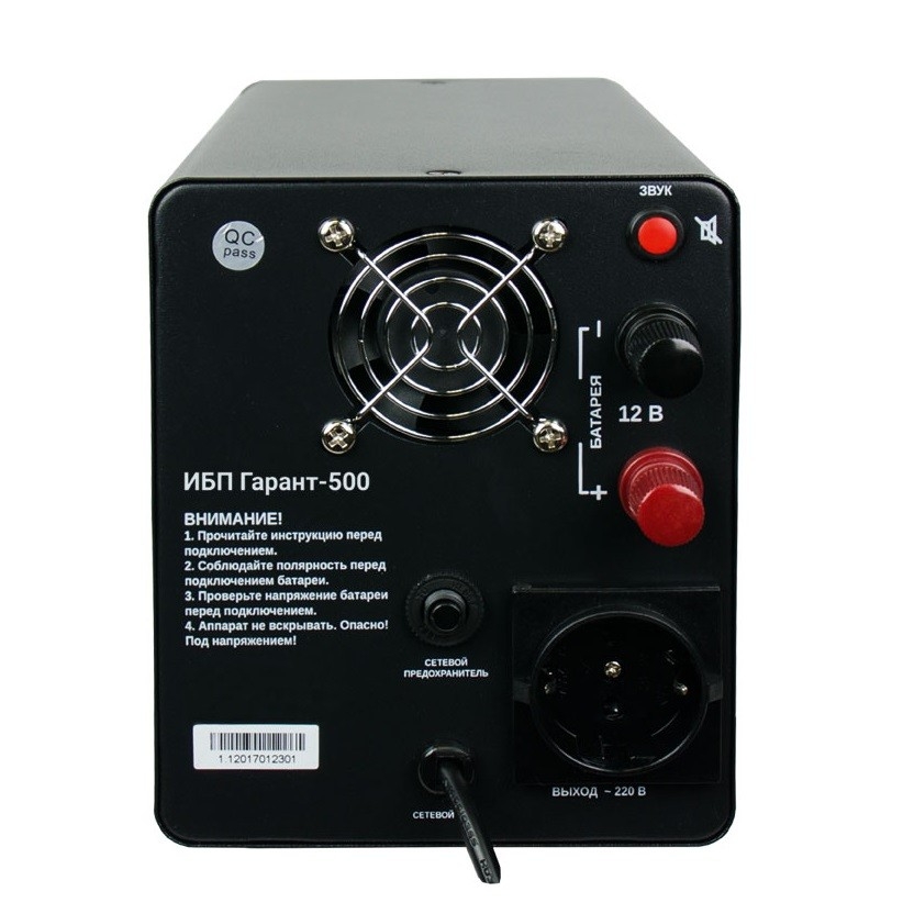 Инверторы «Энергия» серии ИБП Гарант заряжают аккумулятор в момент присутствия сети. При полном пропадании питания прибор находится в режиме преобразователя постоянного сигнала в переменный (инверторный режим). Он преобразует постоянное напряжение аккумуляторной батареи в переменное напряжение 220 Вольт, которое подается к потребителям. При появлении напряжения в сети происходит переключение прибора из инверторного режима в режим стабилизации. Он начинает работать как стабилизатор напряжения релейного типа с диапазоном входных напряжений 155-275 Вольт и с точностью 220±10%. Одновременно с этим происходит зарядка аккумуляторной батареи. В инверторном режиме прибор потребляет энергию подключенного к нему аккумулятора. Тип инвертора: Line-interactive Способ установки: Напольный Форма напряжения: Чистая синусоида Число фаз: Одна Максимальная мощность (ВА): 500 Пик-фактор: 3:1 Наличие стабилизатора: Есть, автотрансформатор с релейными ключами Величина постоянного напряжения (В): 12 Количество 12 вольтовых аккумуляторов необходимых для работы: 1 Функция заряда аккумулятора: Есть Ток заряда аккумуляторов (А): От 10 до 15 Максимальная ёмкость подключаемых аккумуляторов (А/Ч): 200 Рабочий диапазон входного напряжения сети (В): 155-275 Выходное напряжение при питании от сети (В): 220 ±10% Выходное напряжение при питании от батарей (В): 220 ±1% Частота выходного напряжения (Гц): 50 Защита от перегрузки до 120% от мощности: 30 секунд работы Защита от перегрузки больше 120% от мощности: 2 секунды работы Защита от перегрузки больше 260% от мощности: Мгновенное отключение Защита от перегрева, больше 120°C: Отключение Защита по току: Автоматический выключатель Защита от повышенного напряжения, с переходом на работу от аккумулятора (В): 285 Защита от пониженного напряжения, с переходом на работу от аккумуляторов (В): 120 Защита от полного разряда батареи: Есть Защита от перезаряда батареи: Есть Защита от перегрузки и короткого замыкания: Есть Время переключения режимов работы: Не более 8 мс КПД (%): 98 Индикация параметров работы: LED-дисплей (многофункциональный) Способ охлаждения: Естественная циркуляция воздуха и работа вентилятора Подключение к сети: Cетевой кабель с вилкой Подключение нагрузки к инвертору: Розетка 220 Вольт Подключение аккумулятора к инвертору: Клеммы Температура эксплуатации (°C): -5...+40 Температура хранения (°C): -15...+45 Относительная влажность: 98% Габаритные размеры (мм): 170х140х340 Вес (кг): 5 Вес брутто (кг): 5,4 Инверторные преобразователи постоянного напряжение в переменное со встроенным релейным однофазным стабилизатором напряжения серии ИБП Гарант это устройства, способные обеспечить электроприборам не только стабильное напряжение, но и бесперебойное и даже более качественное электроснабжение потребителей в случаях полного отключения питания. Так как точность выходного напряжения при работе от АКБ 220±3%, и на выходе чистая синусоида. Инверторы «Энергия» серии ИБП Гарант подключаются к внешнему аккумулятору. Используется 12 и 24 вольтовые аккумуляторной батареи, в зависимости от модели ИБП. Использование внешнего аккумулятора дает ощутимые преимущества по сравнению со встроенным: нет необходимости обращаться в сервисный центр по поводу замены старого аккумулятора на новый; есть возможность подобрать именно тот аккумулятор, который подходит для конкретного потре