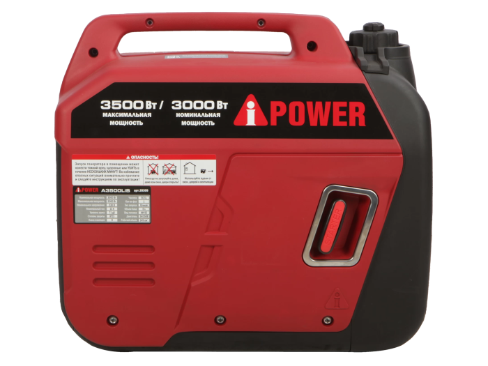 Инверторный бензиновый генератор A-iPower A3500LiS - модель из линейки инверторных генераторов, к которой можно подключить приборы суммарной мощностью 3,5 кВт. Двигатель Серия: SH150B Тип: 4-тактный, OHV Производитель двигателя: A-iPower Тип двигателя: Бензиновый Тип топлива / класс: Бензин АИ-92 Тип масла, SAE: SAE 10W-30 Объем масляного картера, л: 0,48 Количество цилиндров: 1 Тип охлаждения: Воздушное Генератор Максимальная мощность, кВт: 3,5 Номинальная мощность, кВт: 3,0 Коэффициент мощности (cos): 1 Класс защиты: IP23 Напряжение, В: 230 Частота, Гц: 50 Количество фаз: 1 Оснащение Сертификат СЕ: есть Вес изделия, кг: 27,5 Вес в упаковке, кг: 23 Габаритные размеры упаковки, мм: 560х365х515 Габаритные размеры изделия (ДхШхВ), мм: 500х300х450 Комплектация: Инверторный генератор/Инструкция по эксплуатации / Отвертка / Трубка для масла / Свечной ключ / Штепсельная вилка (2шт) Уровень шума на 7 м, дБ: 71 Класс изоляции: H Стартер: Ручной Ручка для транспортировки: Ручка для переноса Цифровой дисплей: Есть Выход USB: Есть К такому генератору можно не опасаясь подключать чувствительную к скачкам напряжения технику: телефоны, планшеты, ноутбуки и др. Инверторный бензиновый генератор может использоваться как во время поездок на природу: в походе, на рыбалке, так и для резервного электропитания в загородном доме. На панели управления генератора выведены 2 стандартные розетки 230В, одна розетка под прикуриватель 12В и USB выход, выходы для параллельной эксплуатации. Многофункциональный дисплей отображает основные параметры работы генератора. Все розетки имеют защиту от влаги и пыли. Экономичный режим работы генератора позволяет снижать расход топлива и экономить ресурс при небольших нагрузках. В таком режиме портативная цифровая электростанция A-iPower работает на одном баке дольше и производит меньше шума за счет понижения количества оборотов двигателя.
