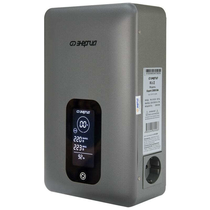 Стабилизатор напряжения Энергия Expert 2000 современное устройство для обеспечения стабильной подачи электричества, защищающее технику от перепадов и колебаний сети. Уникальная система двойного преобразования позволяет мгновенно корректировать уровень входного тока, предоставляя качественное электроснабжение даже в условиях нестабильной сети. Энергия Expert 2000 незаменим для домов, офисов и других помещений, где необходима надежная защита от перепадов сети. Идеален для питания чувствительной аппаратуры: от компьютеров и аудиосистем до измерительных приборов и медицинского оборудования. Благодаря широкому рабочему диапазону и способности мгновенно корректировать параметры сети, стабилизатор особенно полезен в зонах с нестабильным электроснабжением, где важно поддерживать бесперебойную работу оборудования. Максимальная мощность нагрузки, ВА: 2 000 Максимальная мощность нагрузки, Вт: 1 500 Тип входного напряжения: Однофазный Рабочий диапазон входных напряжений (В): от 90 до 310 Отклонение выходных напряжений: ±2% Принцип стабилизации: Двойного преобразования Принцип работы стабилизатора: Инверторный Режим работы: Непрерывный Вариант установки: Настенный / Настольный Предельный диапазон входных напряжений (В): от 90 до 310 Номинальная частота переменного тока, Гц: 50 Максимальный ток на входе, А: 10 Выходное напряжение, В: 220/230 Рабочий диапазон выходных напряжений, В: 216224 / 226235 Допускаемая перегрузка: до 150% Время переключения режимов работы: 0 мс КПД (%): не менее 97 Защита от пониженного напряжения, откл. при: 90В Защита от повышенного напряжения, откл. при: 310В Защита от перегрева трансформатора, откл. при: 120 °С Защита от перегрузки по току: Автоматический выключатель Вид входной цепи: Сетевой кабель с вилкой типа F - 1,5м Вид выходной цепи: 1 розетка типа F Дисплей: LED-дисплей Индикация: Входное напряжение / Выходное напряжение Температура хранения, °С: -40...+45 Относительная влажность, %: 90 (при 35°С) Способ охлаждения: Воздушное конвекционное Степень защиты, IP: IP20 Рабочая температура, °С: +5...+40 Вес нетто (кг): 2,6 Габаритные размеры нетто (мм): 87*173*280 Вес брутто (кг): 3,0 Преимущества: Высокая точность: Стабилизация с отклонением всего ±2% гарантирует надежную защиту для техники, требующей высокого уровня стабильности. Моментальная реакция: Благодаря инверторной технологии устройство мгновенно реагирует на изменения, обеспечивая бесперебойную работу подключенных приборов. Информативный дисплей: Светодиодный экран отображает напряжение, частоту, нагрузку и режим работы, а также позволяет переключаться между уровнями 220 В и 230 В. Оптимальная мощность: Устройство поддерживает длительную нагрузку до 2000 ВА / 1500 Вт, что подходит для защиты различных приборов в домашних и офисных условиях. Технические характеристики: Диапазон входного тока: Стабилизатор работает при колебаниях напряжения от 90 до 310 В, эффективно поддерживая работу даже при значительных отклонениях в сети. Выходные параметры: Номинальный выходной уровень 220 или 230 В (в зависимости от выбора пользователя), обеспечивая идеальное электропитание. Защита от перегрузки: Допускает кратковременные перегрузки до 150%, обеспечивая безопасную эксплуатацию при повышенной нагрузке. При скачках срабатывает автоматический выключатель. Энергоэффективность: КПД стабилизатора составляет не менее 97%, что позв