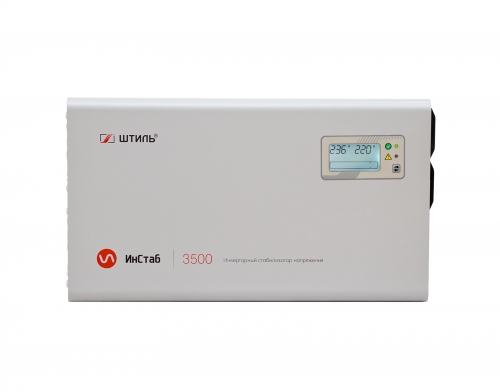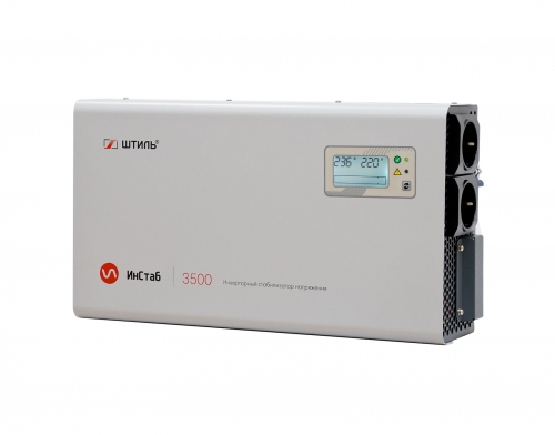 Инверторный стабилизатор напряжения "Штиль" обеспечивает наивысший уровень защиты оборудования по сравнению с другими типами стабилизаторов. Благодаря использованию технологии двойного преобразования (онлайн) этот стабилизатор имеет уникальные технические характеристики и потребительские свойства. Число фаз: 1 Номинальное входное напряжение, В: 220 Максимальная мощность нагрузки, кВА: 3,5 Допустимая перегрузка: 150% не менее 5 сек Рабочий диапазон входного фазного напряжения, В: 90-310 Номинальная входная частота, Гц: 50 Диапазон входной частоты, Гц: 43-57 Номинальное выходное напряжение, В: 220/230/240 В (настраивается на заводе, стандартно 220 В) Стабилизация выходного фазного напряжения, %: 2 Рабочий диапазон выходного фазного напряжения, В: 216-224 КПД, %: 96 Диапазон изменения нагрузки, %: 0-100 Коэффициент мощности нагрузки: 0-1 (любой тип нагрузки) Климатическое исполнение: УХЛ 4.2 по ГОСТ 15150 Диапазон температуры окружающей среды, °С: +5 C ... +40 C Диапазон температуры окружающей среды при транспортировке и хранении, °С: -40 С ... +40 С, кроме самолетов. Относительная влажность воздуха, %: до 90% без конденсата Вид охлаждения: принудительное, интеллектуальное Степень защиты: IP20 Масса, кг: 5 Масса в упаковке, кг: 5,3 Габаритные размеры (ШхВхГ), мм: 360 x 205 х 105 Габаритные размеры в упаковке (ШхВхГ), мм: 410 x 230 x 115 Гарантийный срок, мес: 24 Срок службы, лет: 10 Данная модель предназначена для защиты оборудования, мощность которого не превышающей 3500 ВA / 2500 Вт (автоматика котлов и других ответственных потребителей, СВЧ-печи, насосы, компрессоры, копировальные аппараты,телевизоры, аудио-видео техника, компьютеры, факсимильные аппараты, офисные АТС, медицинское оборудование, прецизионные измерительные приборы и т.д.) Инверторный стабилизатор напряжения "Штиль" мощностью 3500 ВА / 2500 Вт выполнен в виде блока для настольного или настенного размещения с ЖК экраном на передней панели, автоматическим выключателем, клемной колодкой и двумя розетками евростандарта на боковой панели. Конструктивные особенности однофазных инверторных стабилизаторов "Штиль" Бестрансформаторная схема двойного преобразования напряжения (онлайн) на современных IGBT-транзисторах с микропроцессорным управлением. Малый вес и габариты по сравнению с аналогами сопоставимой мощности. Синусоидальная форма выходного напряжения. Мгновенная реакция на изменение напряжения на входе. Отсутствие переходных процессов при скачках напряжения на входе. Широкий диапазон напряжения на входе и высокая точность стабилизации на выходе. Корректор мощности на входе. Независимо от характера нагрузки стабилизатор является для сети чисто активной нагрузкой и не вносит искажений в первичную сеть. Полная электронная защита нагрузки и самого стабилизатора от короткого замыкания, перегрузки, пониженного и повышенного напряжения на входе, перегрева. Фильтрация высокочастотных помех из первичной сети При заказе стабилизатора, указывайте интересующую модификацию: с выходным напряжением 220 В или 230 В.