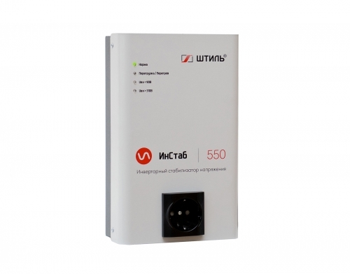 Инверторный стабилизатор напряжения "Штиль" мощностью 550 ВА / 400 Вт выполнен в виде блока для настольного или настенного размещения со светодиодной индикацией на передней панели, клавишным выключателем, сетевым шнуром с евровилкой и двумя розетками евростандарта на передней панели. Данная модель предназначена для защиты оборудования, мощность которого не превышающей 550 ВA / 400 Вт (автоматика котлов и других ответственных потребителей,телевизоры, аудио-видео техника, факсимильные аппараты, офисные АТС, медицинское оборудование, прецизионные измерительные приборы и т.д.) Технические характеристики Число фаз: 1 Номинальное входное напряжение, В: 220 Максимальная мощность нагрузки, кВА: 0,55 Допустимая перегрузка: 150% не менее 5 сек Рабочий диапазон входного фазного напряжения, В: 90-310 Номинальная входная частота, Гц: 50 Диапазон входной частоты, Гц: 43-57 Номинальное выходное напряжение, В: 220/230/240 В (настраивается на заводе, стандартно 220 В) Стабилизация выходного фазного напряжения, %: 2 Рабочий диапазон выходного фазного напряжения, В: 216-224 Коэффициент мощности нагрузки: 0-1 (любой вид нагрузки) Климатическое исполнение: УХЛ 4.2 по ГОСТ 15150 Диапазон температуры окружающей среды, °С: +5 C ... +40 C Диапазон температуры окружающей среды при транспортировке и хранении, °С: -40 С ... +40 С, кроме самолетов. Относительная влажность воздуха, %: до 90% без конденсата Вид охлаждения: естественное Степень защиты: IP20 Масса, кг: 2 Масса в упаковке, кг: 2,2 Габаритные размеры (ШхВхГ), мм: 140x240x87 Гарантийный срок, мес: 24 Срок службы, лет: 10 Конструктивные особенности однофазных инверторных стабилизаторов "Штиль" Бестрансформаторная схема двойного преобразования напряжения (онлайн) на современных IGBT-транзисторах с микропроцессорным управлением. Малый вес и габариты по сравнению с аналогами сопоставимой мощности. Синусоидальная форма выходного напряжения. Мгновенная реакция на изменение напряжения на входе. Отсутствие переходных процессов при скачках напряжения на входе. Широкий диапазон напряжения на входе и высокая точность стабилизации на выходе. Корректор мощности на входе. Независимо от характера нагрузки стабилизатор является для сети чисто активной нагрузкой и не вносит искажений в первичную сеть. Полная электронная защита нагрузки и самого стабилизатора от короткого замыкания, перегрузки, пониженного и повышенного напряжения на входе, перегрева. Фильтрация высокочастотных помех из первичной сети Инверторный стабилизатор напряжения "Штиль" обеспечивает наивысший уровень защиты оборудования по сравнению с другими типами стабилизаторов. Благодаря использованию технологии двойного преобразования (онлайн) этот стабилизатор имеет уникальные технические характеристики и потребительские свойства.